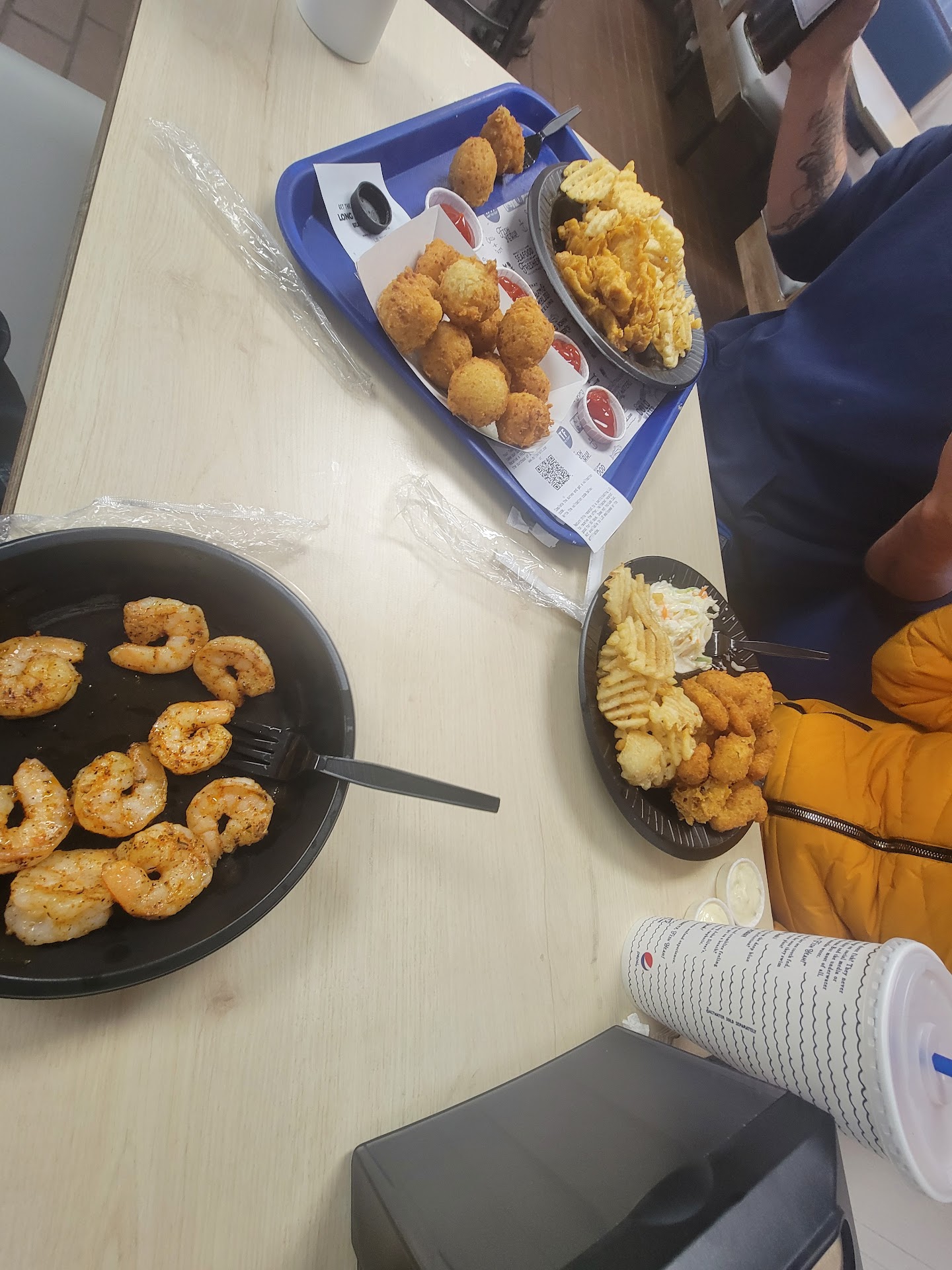 Read moreThe food is way too overpriced at Long John Silver's, I ordered a fish with shrimp platter and I didn't get the six shrimp only got five I ordered small and cheese cubes for my size they give me fries and cold cheese cubes and I paid like all together with the two pieces of Cheesecake I bought which they were pretty good I spent like $25 on a one platter and two pieces of cheesecake and I didn't even get what I ordered....