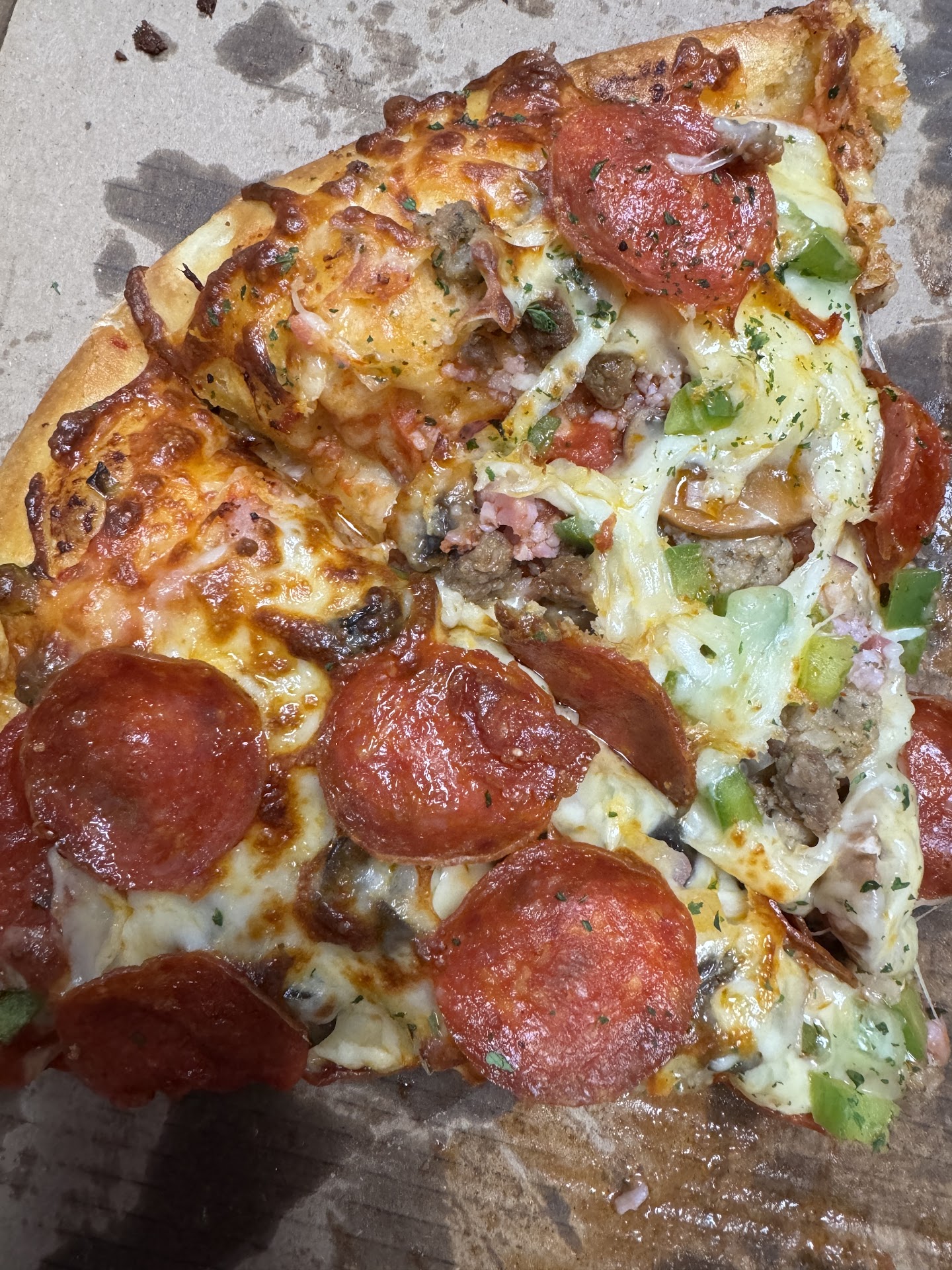 Pizza was delicious and had toppings evenly covered with a good cheese to topping ratio. The cheese-sticks were cheesy and very good. The side salad had just enough toppings and was good as well. They had a vegan crust option available when asked about a cauliflower crust. The lady that took my order was very kind and went over options available to me and was very friendly. My order was...
