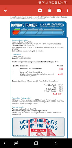 Read moreSo I ordered from this particular domino’s 1 time and got food poisoning from undercooked chicken. Literally ridiculous. I then call them telling them I got food poisoning and they just said “oh okay, well we do things correctly here” I didn’t even get an “I’m sorry” I wasn’t too mad at first because I didn’t know if it was just me or the food, but then my friend also ends up getting sick!! I call back and no answer. I then called dominos headquarters and was told that this was a franchise and I would be getting the money back. THAT NEVER HAPPENED. For 2 days straight my friend and I were sick, throwing up and couldn’t hold any of our food down. This is ridiculous honestly. DONT...