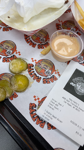 Pat’s Pattys……absolutely great! So I originally ordered the Patty fries. A Wagyu beef smashed burger with cheese and it is topped on an order of fries. It comes with Pats original burger sauce and sweet pickles with chili’s. The fries are cooked in beef tallow. Yes that is correct….beef fat, not that ugly seed oil that all FF restaurants use. I didn’t get the burger sauce on mine. I wanted to just try the actual meat. Oh wow, I was in for a treat. Very…very good. The Wagyu meat was tender and fresh. I was so impressed I purchased a Wagyu burger afterwards. Oh yeah! The burger came Oklahoma style. That is Wagyu burger cooked with thinly sliced onions. If you like onions you will like this. You can order it without onions. The Wagyu burger is served on a Potato bun. The bun was nice and warm. Pats Pattys uses sweet pickles on their burgers. I do prefer dill. However, they make everything in house including those pickles. The chilis are a premium brand. I didn’t get the type of cheese they use. Nevertheless it was great. Next time I would get the double patty with an order of fries. The restaurant is very clean. The employees are extremely friendly and nice. They will answer all your questions. It might be on the expensive side for a burger. But your not getting a burger, your getting WAGYU burger. Definitely BETTER! Good job Pat! Please...