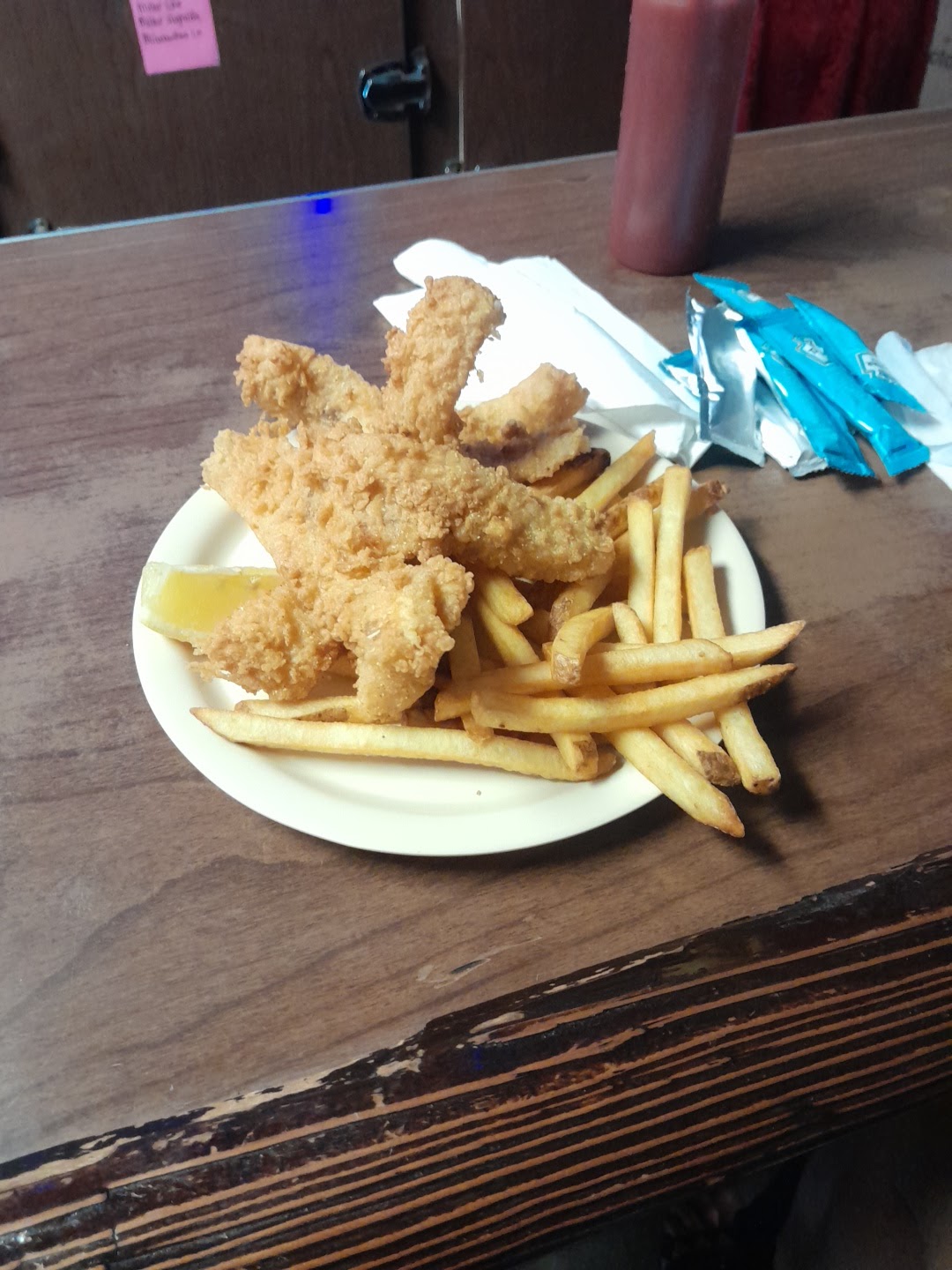 I recently moved to the area about 3 months ago. When I'm feeling hungry for some fish this is where I go. If I could give there Perch special it's own rating I would. Perfect coating not too think not too thin with a nice amount of spice. Squeeze a little lime or lemon on em and you have the perfect lunch or dinner. The staff are kind and friendly. If there not to busy, make for excellent conversation. Family friendly as well. You can definitely bring your kids and not feel bad. Clean seats and tables with a nice amount of air flow. Even have a outdoor seating area for a chance of scenery. I'm not to big of a drinker but the beers I have gotten of tap were poured with a nice head, not too think and had nice flavor to them. Small Town bar with the vibes to go with it. Makes it easy to call this city...