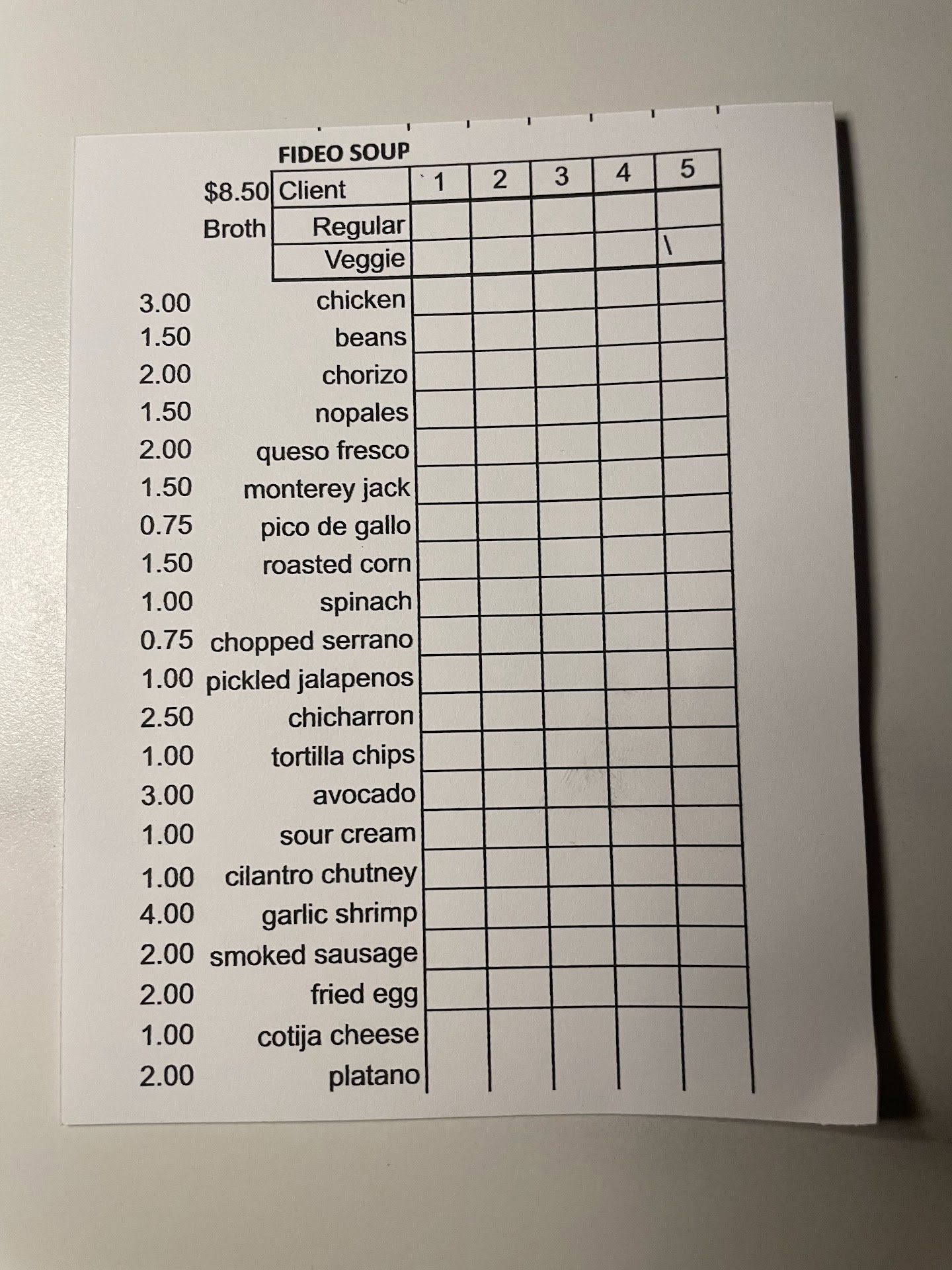 We had fideo since that was the reason my friend brought me here, but after adding all the toppings, it came out to about $26 a bowl, and it didn't seem worth it. There was too much liquid in my bowl. Wish they put more shrimp and beans in my bowl. My friend got a decent amount of chicken in his, so I probably should've ordered that?
