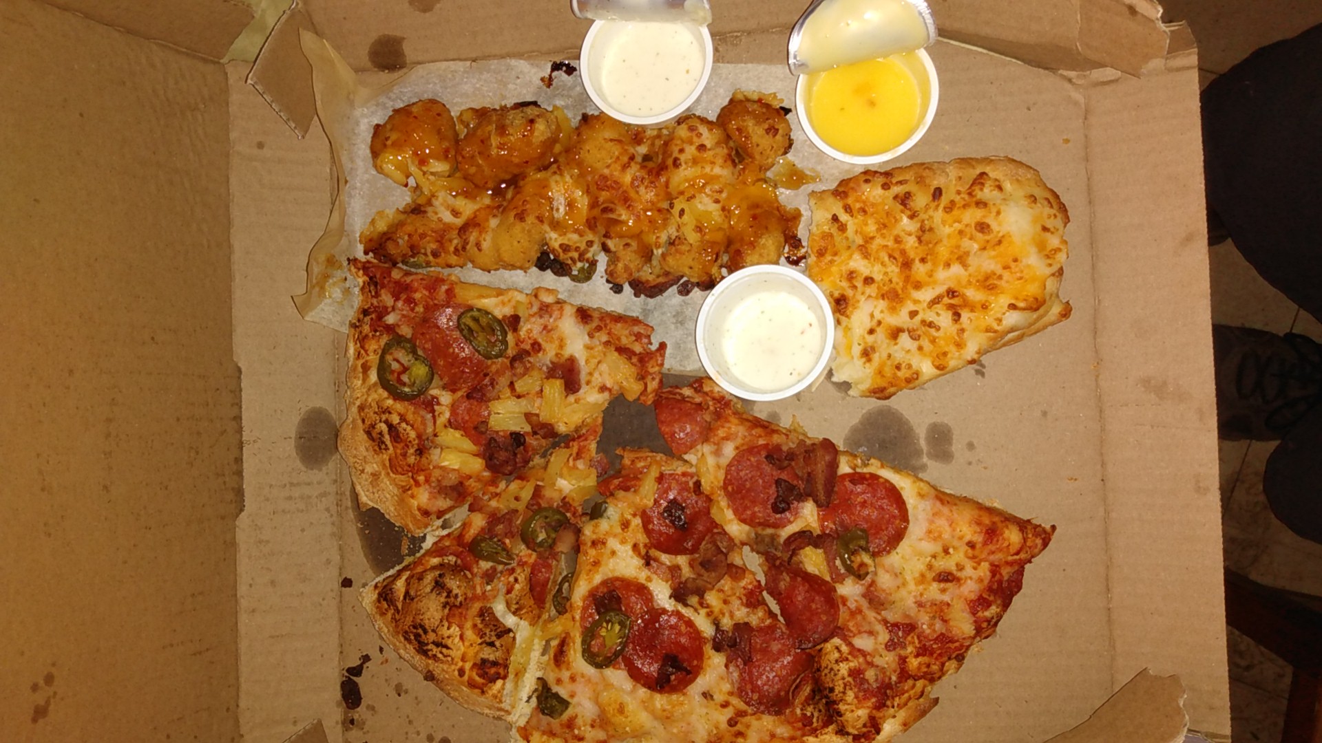 At 6:50, I made another phone call, not to complain, but just to see what was going on, and got no answer. I decided to walk in after another 40 minutes just to get some sort of update. After the two people in front of me lost patience over their order and left, I waited until I was able to speak to someone. The staff were reluctant to talk to me, which I understand as I saw a couple people in front of me chew them out, which kind of sucked because I don't think any of them had anticipated that night. The phones were ringing, and going unanswered because the few workers who were there were scrambling to get every last pizza out, so there wasn't all that much time for human interaction. I eventually got to talk to one of the employees and they mentioned they were short staffed that night. It made sense, as it looked like there were less than 10 people there.