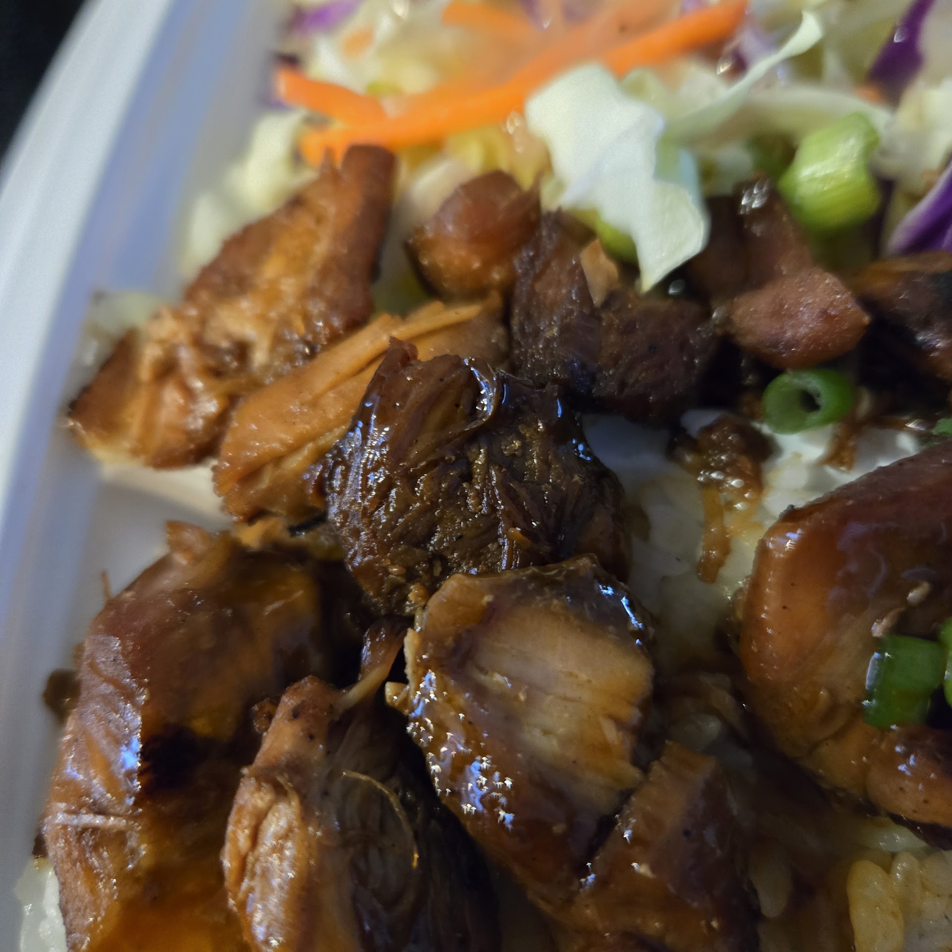 I ordered their steak bulgogi, spicy chicken on the side and kimchi along with steamed vegetables. The quality of the steak was great and it was seasoned perfectly. The chicken was spicy and descent quality. The kimchi was good but wish it were more house made and not in a container. Overall it was a satisfying lunch.