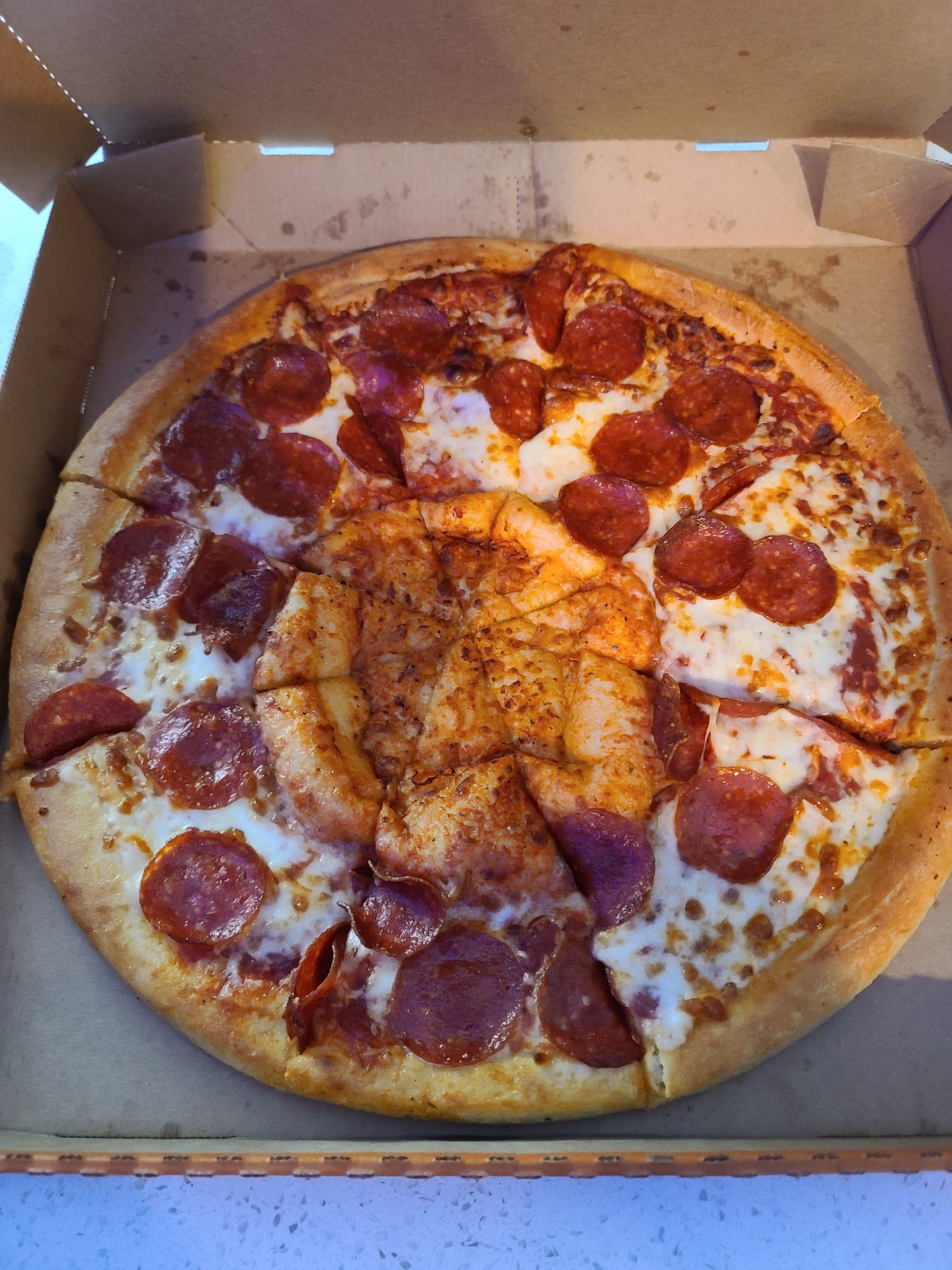 Ā Ā Ā Read moreThey are very consistent with their food. Almost always on par. And you can't beat their prices. And if you order using their app, you can receive a free 2 liter bottle of soda (just look for the code online). Plus if you use the app, your pizza is hot and ready for you when you get there. Now the place is clean and well kept and the people that work there are pretty nice as well. Good customer service, not like a few years back. There are only a couple of things I don't like about this place, and it really isn't their fault. First, when alot of people are ordering (through the app or at the counter) it can get crowded in their tiny waiting area. Second, when it's busy the parking lot gets extremely crowded. And of course there's always those idiots that double park and block traffic and cars that are already parked can't get out, making things even worse. These dummies don't think they are doing anything wrong. Park at the curb on the street. People are just to lazy to walk an extra 20 yards. Anyway, I come here all the time. To me they have the best tasting pizza around for the price. I'll take them over Domino's or Papa...