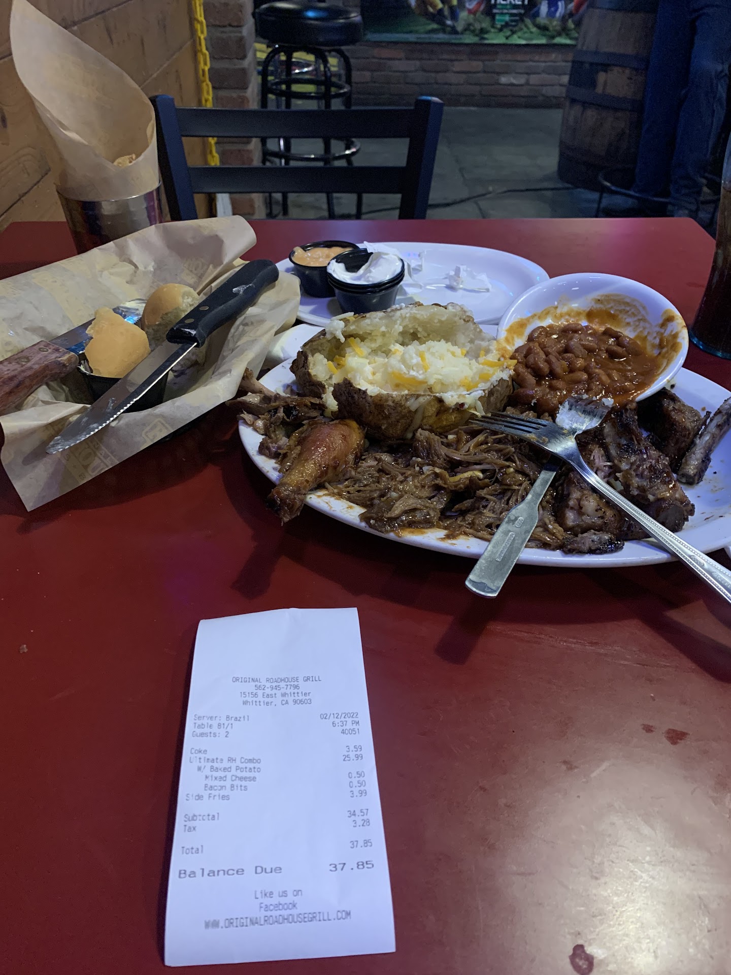 Read moreWe gave it another shot. Was here last week we live by restaurant and our service was awful we were told a new girl didn’t put our order in right so all wrong food came out and we were never asked for refills. When wrong food order did come out it sat outside in front of us for 10 min while they tried to figure out our order we were amazed at this. Anyways now 1 hour 20 min later we are told our food was re prepared and we ate. By then we were freezing and a bit agitated. We never even got offered a dessert. I spoke with manager and was told next time to mention him and he will take care of. So once again we had friends who wanted to go here so we took them on Friday 3/19. Got there at 7:25 and waited our 40 min to sit due to limited dining due to COVID inside no worries! Anyways finally ordered and once again our rib eye or prime rib and bbq chicken and grilled chicken took forever. At least 40 min. Waitress apologized. Food came and the two chicken dinners were horribly cold and grilled chicken was way burnt or over cooked. Waitress apologized and said yes I see. She did say sorry but kitchen is closed so would take off that meal. Unbelievable this was so disappointing once again. And I know this is a pandemic but seriously. We were never even asked for refills on drinks or bread during this time. But all others who came much later than us had all there food. Not sure if will be back for quite awhile. Such a shame! So disappointing. And we are pretty patient...