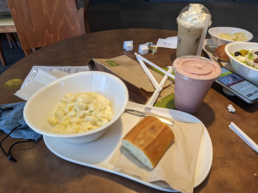 I went to Panera Bread for my first time with my gal pal. She had told me that they had really good macaroni and cheese. I was surprised to hear this because I thought that it was a place that sold sandwiches only. So we both went in and we ordered macaroni and cheese and it is so expensive it's ridiculous absolutely ridiculous! Yes the macaroni and cheese is to die for, but I won't be eating there again due to the price! another thing that happened at Panera Bread was that my girlfriend found an eyelash in her food! After seeing that I was not able to eat my lunch as it made me sick to my stomach to see a hair in her food! So I don't recommend Panera Bread for two reasons their price is ridiculous and the bread that they serve with your meal is cold and rock hard! if you're a bakery and you sell bread why wouldn't you have fresh soft warm bread that you would serve to your customers? I simply do not understand why their bread is cold and hard! It's literally bound to break your teeth! Although they did give my gal pal a replacement macaroni and cheese, we both ended up taking our food to go as both of our stomachs and turned at the site of an eyelash well embedded into her meal, mac and cheese. Can you believe it was over $9 for what they consider a large macaroni and cheese? The large would leave even a toddler hungry! No cannot recommend...
