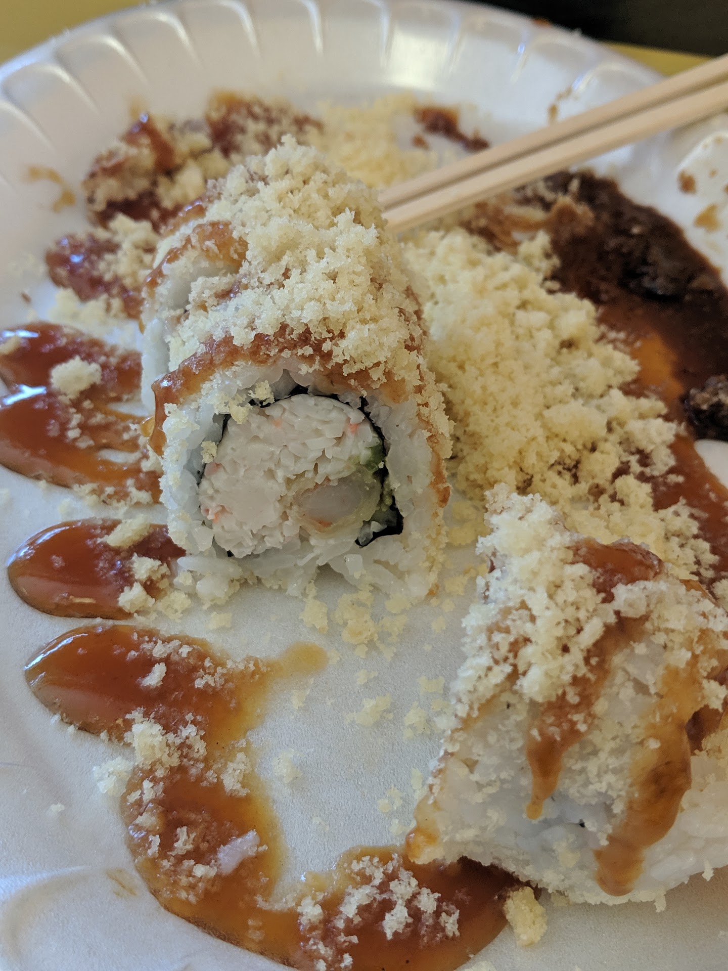 Excellent prices for sushi. Not a lot of room to sit down, no actual dishes to eat off of (just paper/plastic plates and trays) and not much charm in the atmosphere there, this is a place to order to-go. The fish on the sushi was a bit warm for my taste, but everything tasted delicious anyway. I had to try the super dragon roll as the pictures looked amazing, and I have to say it didn't disappoint. Overall I really have no idea how this is the highest rated sushi place in Whittier, when there are probably sit-down restaurants that get the atmosphere right (though they're probably more expensive). However that doesn't mean I won't be back, on the contrary, I will probably order from these guys again, whether through pick-up or through a delivery app. For these prices I'm not sure if you can best their sushi, but I've yet to try every sushi place in the area as I just moved to the area. Will update when I've tried a few more places. As it stands I'm sure you could find tastier sushi, but at what cost? These guys do a great job for a great price, and try to make you feel at home for the short time...