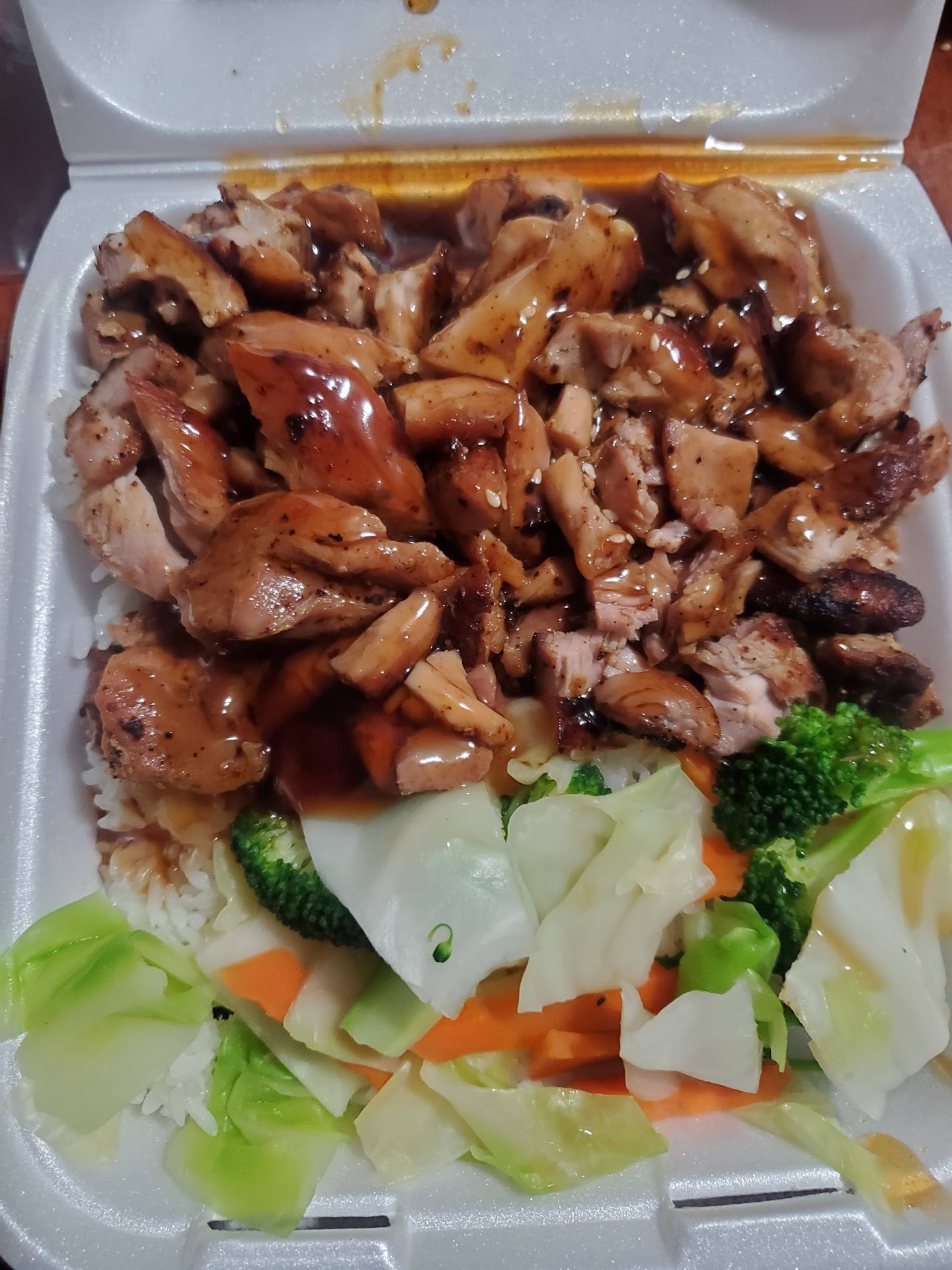 Read moreFirst time here for dine in. I enjoyed the teriyaki salmon with California roll, veggie tempura, rice and steamed veggies. We also ordered the chicken teriyaki. Both dishes were served in foam to go containers, nothing wrong with that but it feels more like take out than a dime in experience. The food was fresh, served hot and we enjoyed the Teriyaki flavoring and dipping sauce. My only comment and why this review is short of 5 stars, is because there is no public restroom. I feel the fine in food establishments should give the consumer access to the restroom. And I’m a green tea lover, there is no green tea only black tea.