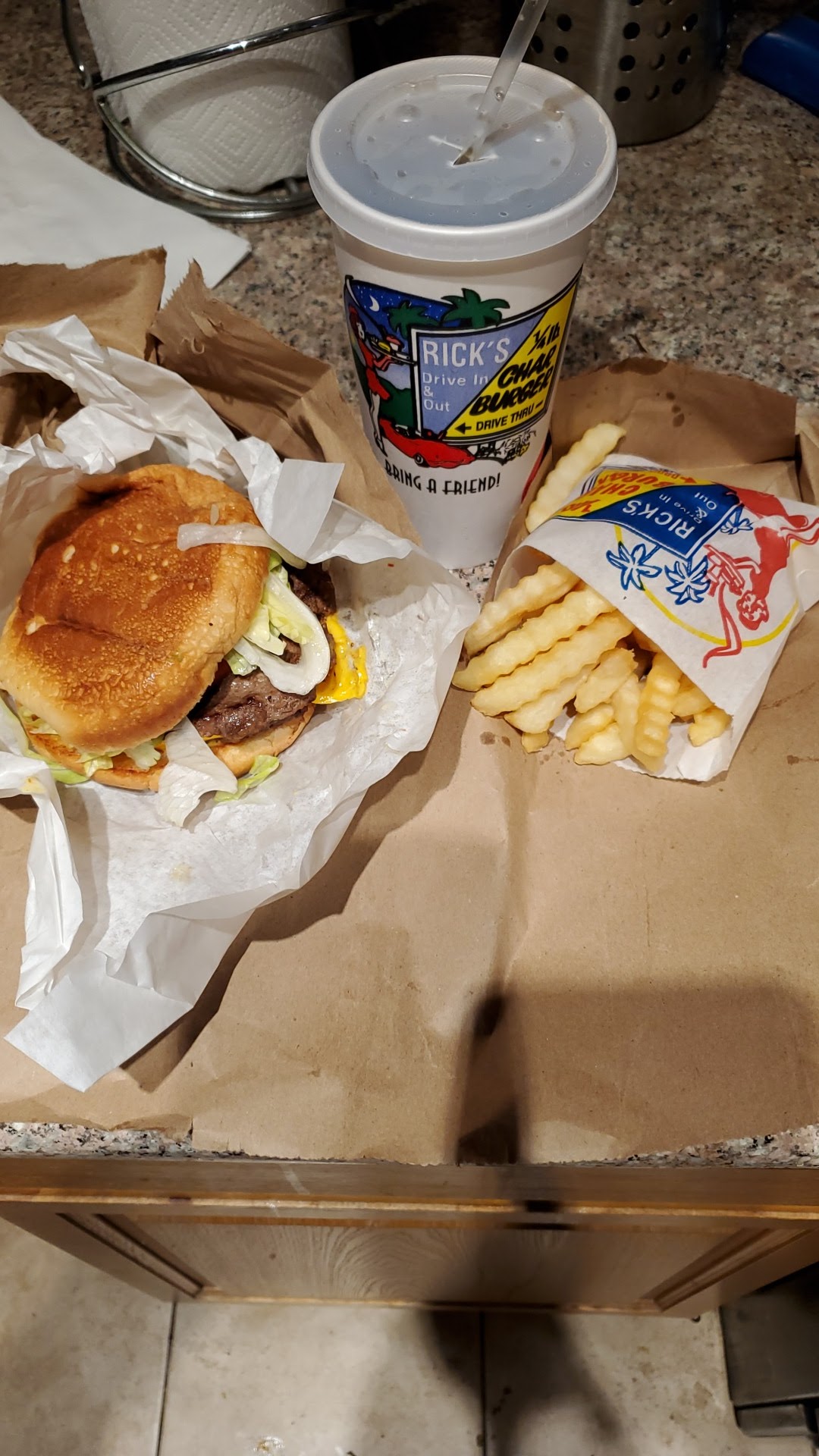Read moreI have been going to Rick's for over 50 years. I love everything about it. The food is freshly made and the staff is like a family. In recent years I've primarily used the drive-through where, like the inside, the service is fast and friendly. Their "chili rellano burrito" is my current MUST HAVE with the delicious chili rellano, rice, beans, cheese and sauce wrapped in the toasty flour tortillas. I like this tortilla. Once in a while I'll get a dollar off coupon for next time. These coupons are literally works of art. It's difficult to part with one. Although I'm writing this review in January, I must mention their outdoor Christmas decorations. They are very well-done. Pick up one of their holiday coffee cups while you're there, if they have any left. I like both the red and the white cup. I bought five of each. The designs are new this year and make me happy. The drive-through order menu is all brand new, bright and cheerful. But back to the food. I've tried nearly everything on the menu and I've enjoyed it all. Some things I just don't order out, no matter where I go or who I'm with. One is French fries. I just don't go there. Rick's signature dish for me has always been their single patty hamburger. It's simple and delicious. My goodness! I almost forgot to tell you about their Albondigas soup that I had recently with corn tortillas. Here were two delicious Albondigas meatballs in this homemade vegetable filled broth. I had forgotten how good their soups are. I also had their fried zucchini sticks. Not my favorite. But zucchini never has been as it holds too much water for my taste. These sticks weren't any different. A little too moist for me. I guess that my mind was yelling twice fried french fries and my taste buds had a fit!