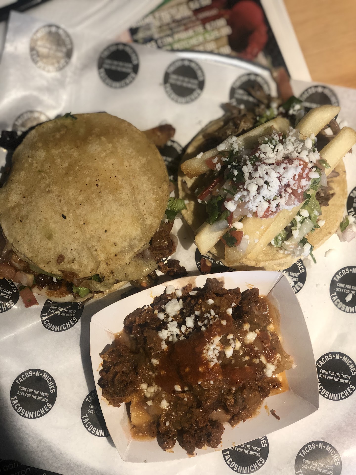 Ā Ā Ā Read moreMy fiancee and i had dinner at Tacos & Miches : uptown Whittier last Friday. the location is spacious but cozy. lots of seating of various types: barstools, standard tables and picnic style bench seating at tables. the food was super awesome -scientific term- we had the Queso Fundido, Mexican Fries, and Carne Asada Tacos along with Chicharon Tacos, along with delicious Chips and 3 types of Salsa....all was so good that we will definitely be coming back to eat more deliciousness.....and you should go there too.... the service was super awesome as well -see above for scientific terminology- Dominic, Tiffany and Monique cook and serve up delicious food. we will be back for sure....maybe we will...