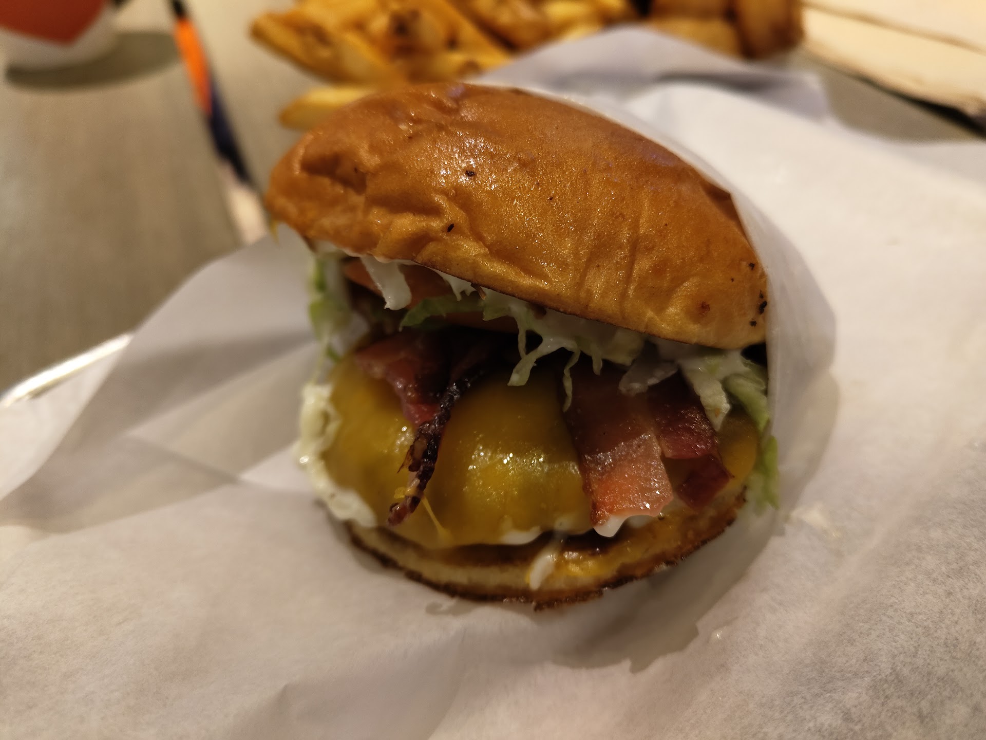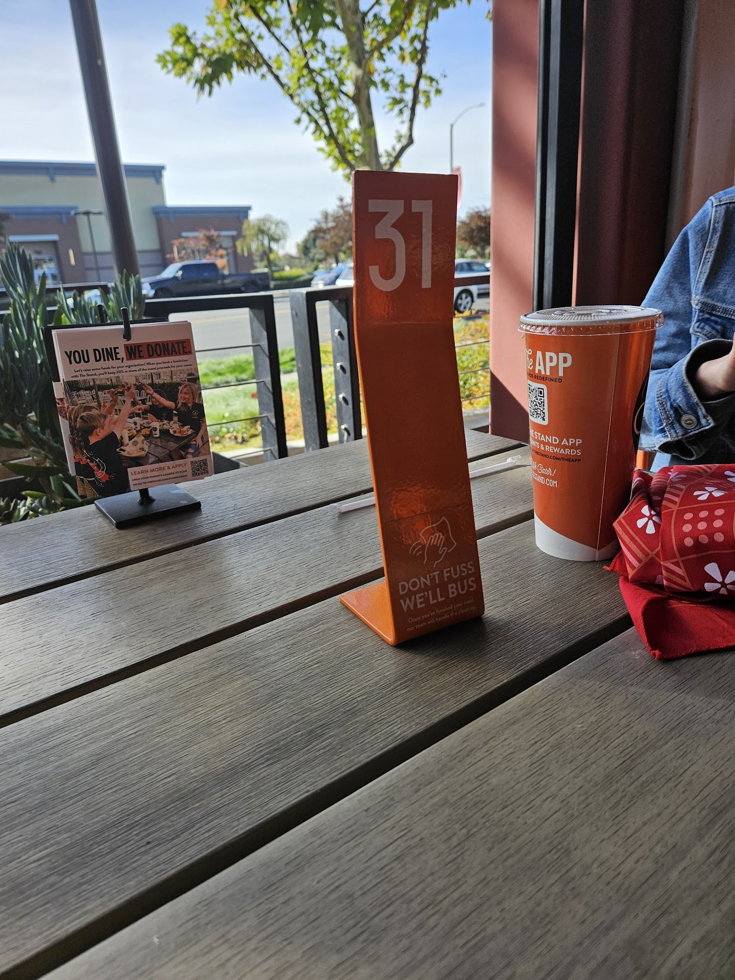 Read moreThere was no line to order when I came in the early afternoon. I ordered the Stand Burger medium with regular french fries and a drink. They had a bar inside and many tables but I decided to eat outside on their patio. After ordering, they give you a number stick and they will bring out your food to your table. This was very nice and I haven't had this happen before at a burger place.