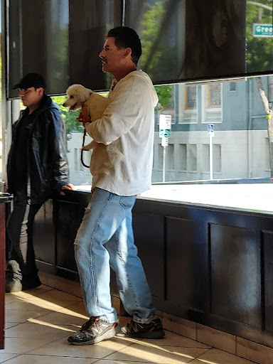 There is some street parking and a very small lot. The lot is not well lit overnight so know that. There is some seating inside. Service was good, but we did have a language difference and so questions weren't able to be answered.