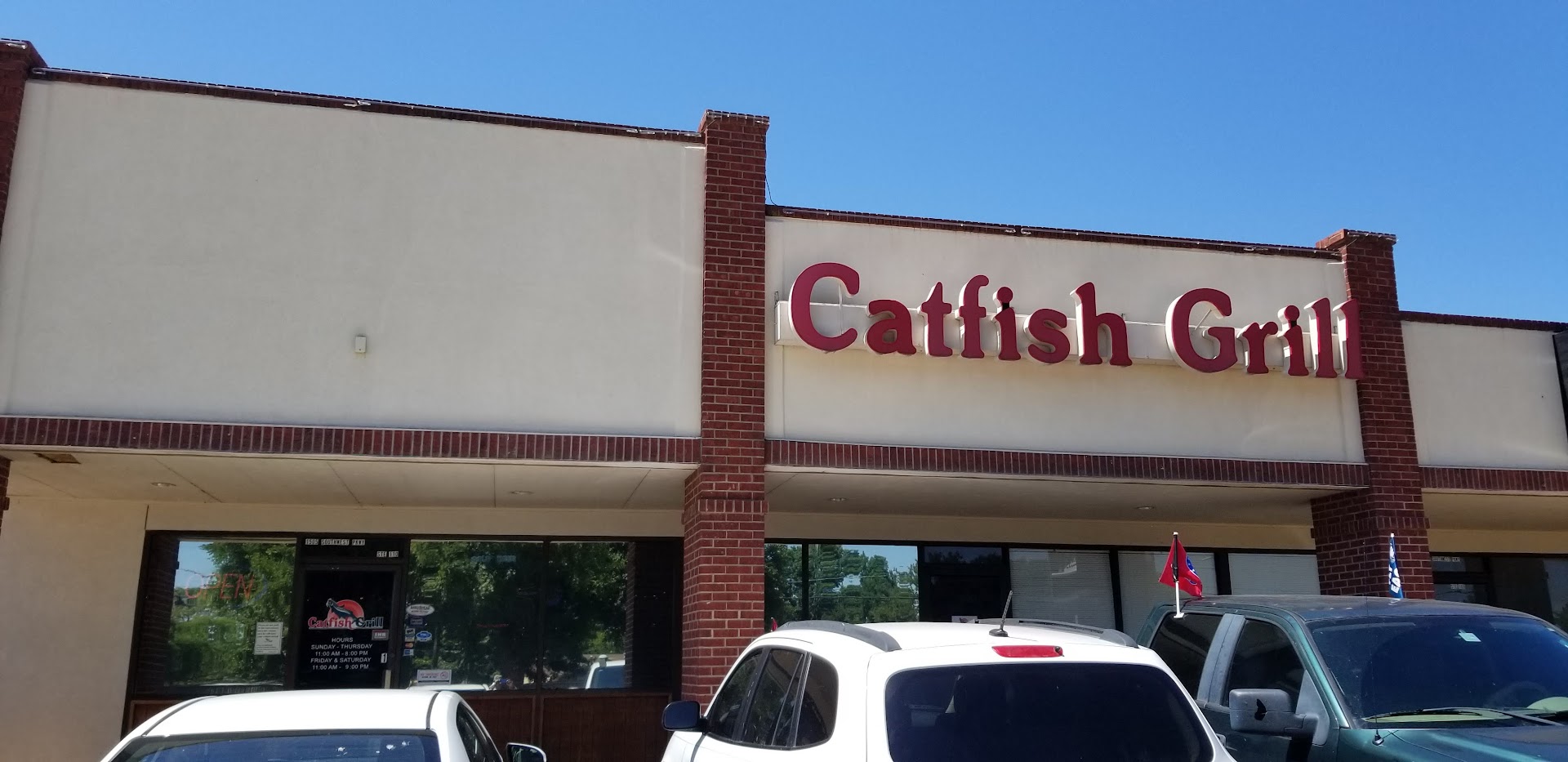 I went to Catfish Grill with my grandfather to enjoy some delicious fried catfish. We saw their ad during a Texas Rangers game. We were intrigued and thought the food looked tasty and delicious in the commercial. It had amazing photography and graphics straight out of 1992, so it appealed to my 89 year old grandfather.