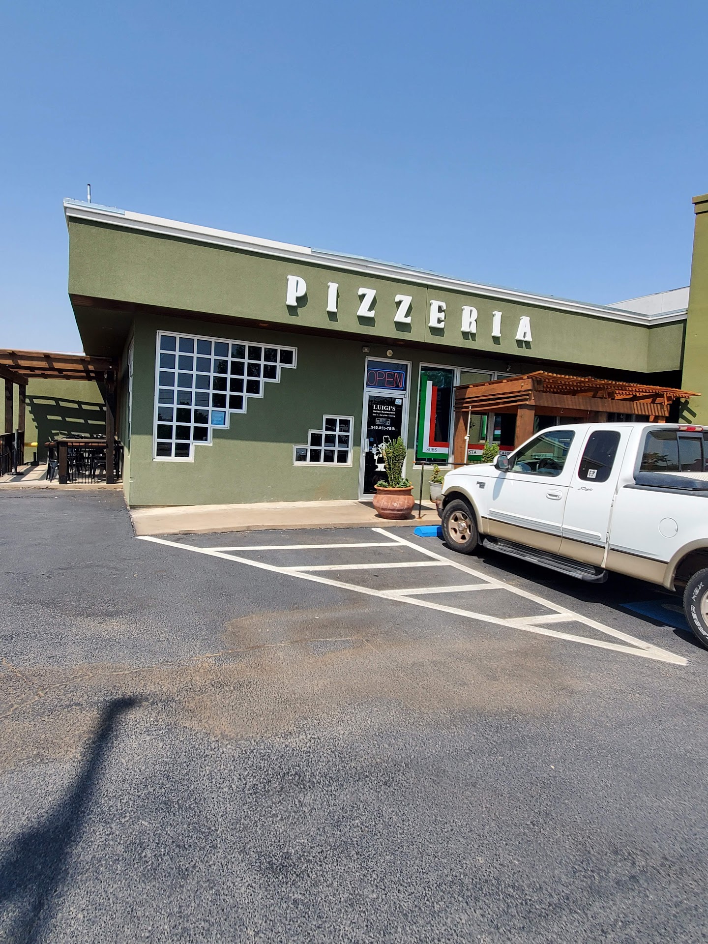 Read moreLuigi's Pizza is a great little restaurant, near the military base, in Wichita Falls, TX. The parking lot and dining rooms are always tidy and clean. They serve delicious authentic Italian food served each day, except Mondays when they close to give their staff a break. The Italian food is made fresh, daily. So far, everything we've eaten is superb. Today, we had lasagna and also manicotti. The food is served at lava temperatures. But while you're waiting for the food temperature to cool down there are yummy garlic bread to eat. Side note: they bake a 24-inch giant sized pizza that, in the box, will barely fit through the entry/exit door without a bit of twisting. The pizza box won't fit in my back seat so I have to put in the back of my van... It's actually that big! It'll feed a crowd, too. The atmosphere is relaxing. The music isn't blarring; instead it is soft and soothing. There are plenty of wine choices for selecting to sip with your meal. Lunch times offer a small salad with the meal. The servers are friendly and prompt; they're attentive to the tables. Our drink refills were timely. Excellent service and delicious food. We enjoyed our time at Luigi's Pizza. Definitely worth the drive to visit and share a meal...