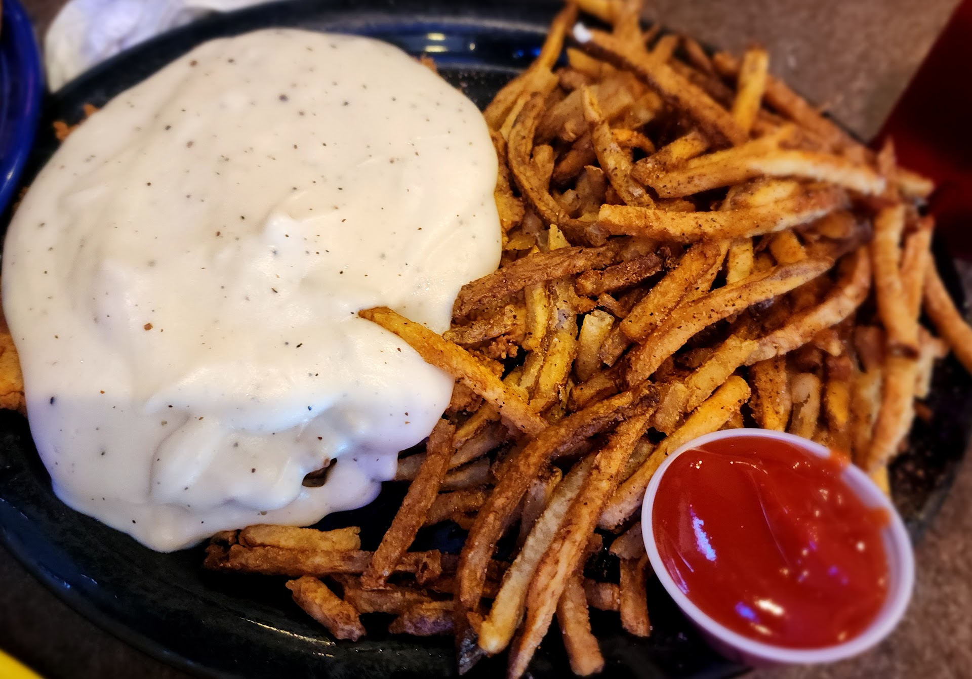 Stopped for lunch on our way home. The food, service, and atmosphere were great! It's not outstanding, but I would frequent here if I lived in Wichita Falls. My husband had the enchilada platter, and I had the hatch green chili cheeseburger with crly fries. They call the Q's. The enchilada platter was a very hefty portion and definitely Tex-Mex style. Think of Taco Beuno's Whole Lotta Platter but made somewhat from scratch. I could tell the chili was from a can. All in all, it's a good meal for the price. The hatch green chili burger was good, but the chilies lacked the flavor I was hoping for. Their ranch is so good. It's definitely the mix together kind. My favorite! They have lots of tvs with different sports, which is fun. Seems the locals enjoy it as well as the whole place was filled when we left. Our server was really nice and good at her job, but it seemed she really didn't want to be there or just didn't enjoy smiling today, lol. It could've just been a bad day for her. Nonetheless, we would stop in again for a drink and a place to chill and eat when we are traveling...