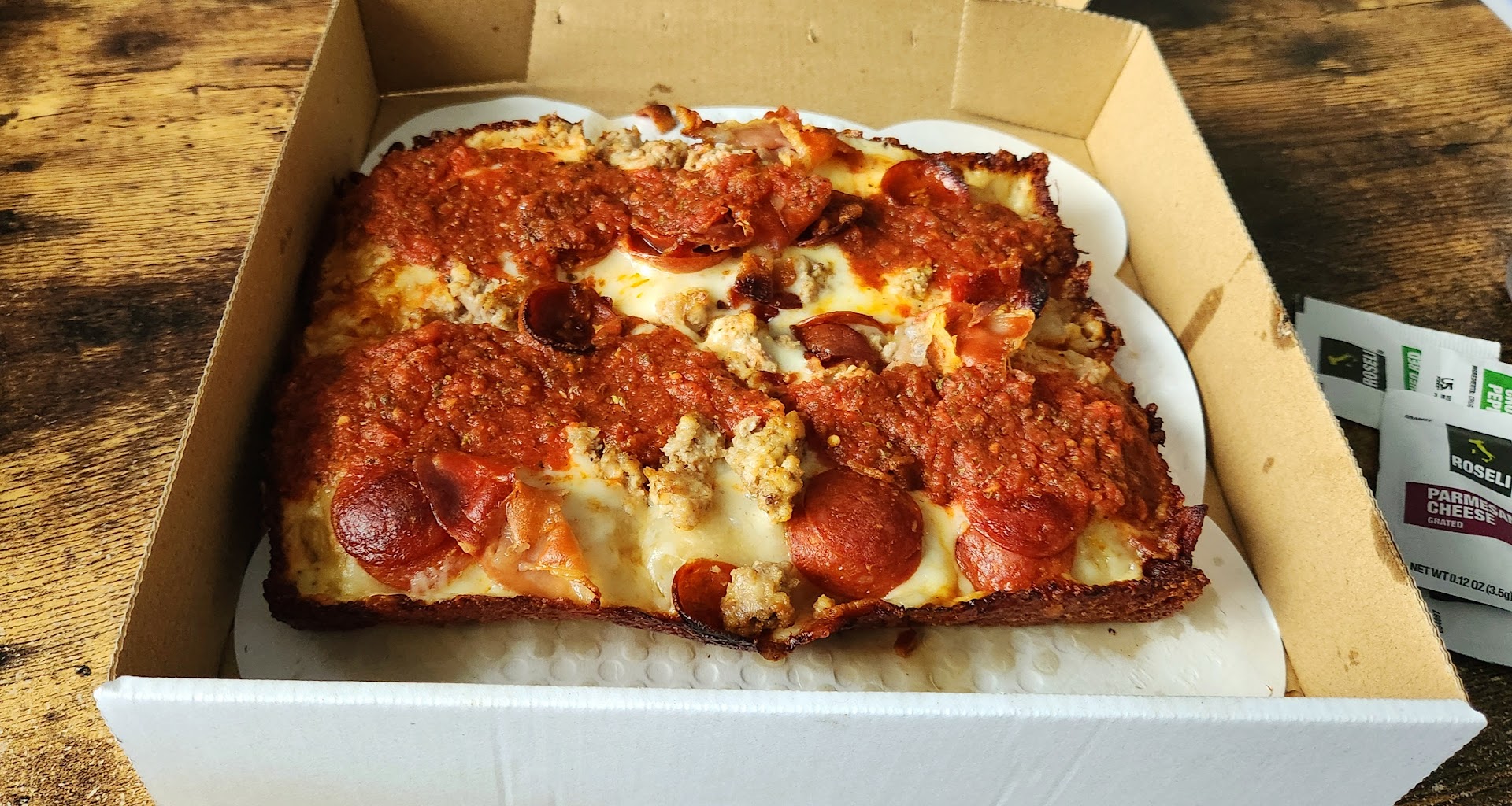 Ā Ā Ā Read moreOrdered a Pepperoni and a "Does Pineapple Belong on Pizza?" and both were very good. The crust on both pies had a buttery crisp on the bottom, fluffy and soft center with chewy edges and crispy, charred cheese. Detroit style perfection. The sauce was fresh and bright without being muddled by too many herbs and spices. Perfect amount of cheese to hold the toppings together. Neither the sauce or the cheese were too heavy handed so every ingredient got to shine without being drowned out. Does pineapple belong on pizza? Yes - especially how they paired it with the heat of the pickled jalapenos and the spicy southern Italian sausage! The bite of sweet is a perfect match! Happy to have the choice of another style in town and they clearly know how to pull off the...