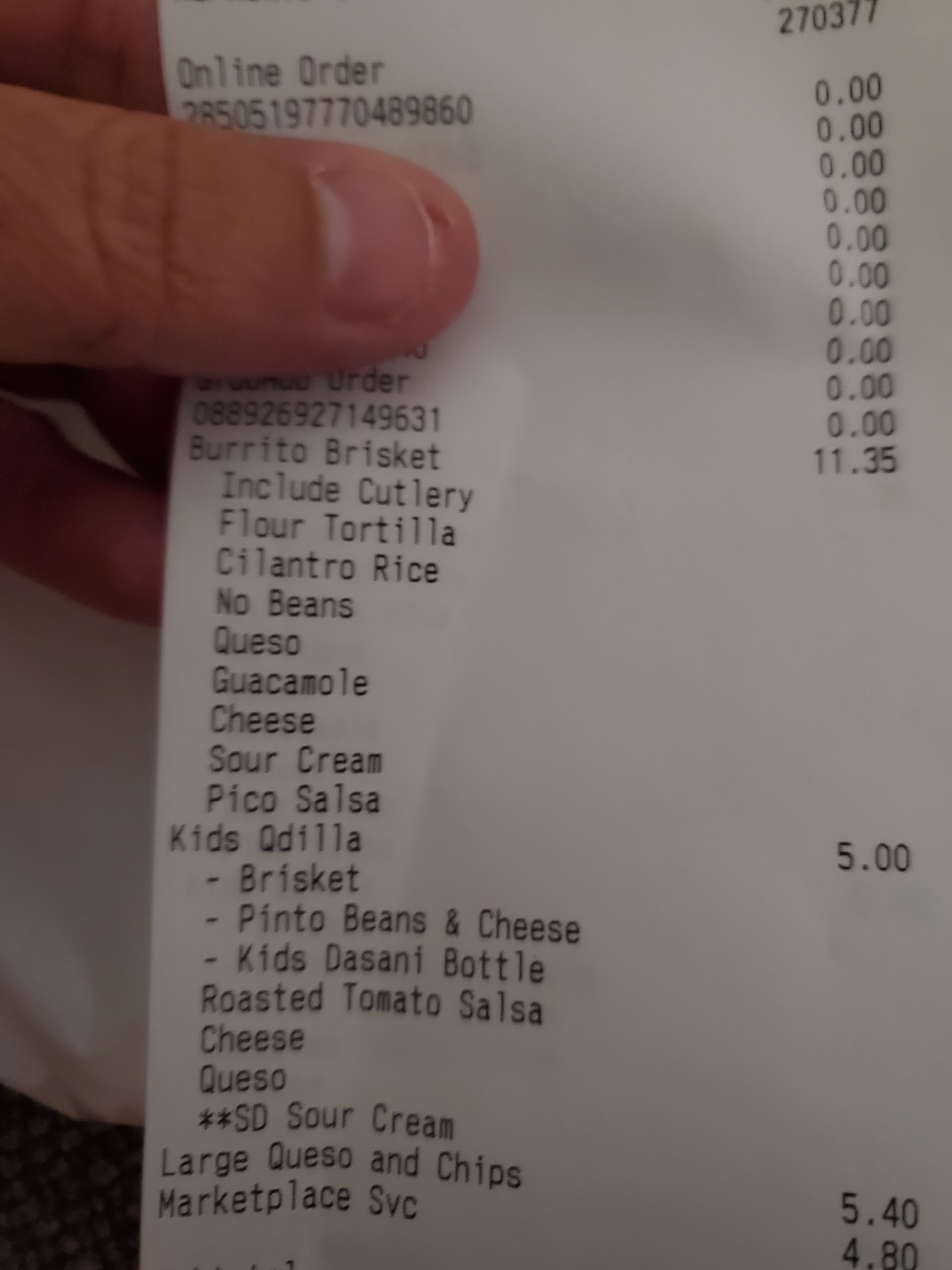Today I decided to give QDOBA a try for lunch for the first time. When I eat out, I usually order curbside as it’s super convenient, the order is usually made while I’m still at work, I leave for a few minutes, pick it up and come back. Today, that was not the case with QDOBA.