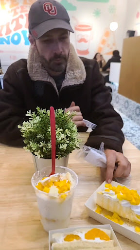 Read moreJus got back from DFW on my way home to my current resident city. My hubby treated me out for a lil' bday and welcome home treat. This was our first and definitely not our last visit. We were obsessed with the menu item plain crepe cake ( a thin mango layered cake topped w/ cream and fresh diced mango fruit.) We also shared a mango cheese "snow boy" and ordered the fruit sando to go. Everything was delicious and surprisingly unexpected. Absolutely recommend stopping by for a light sweet treat. I'm obsessed w/ the crepe cakes. Yum! Next visit we want to try...