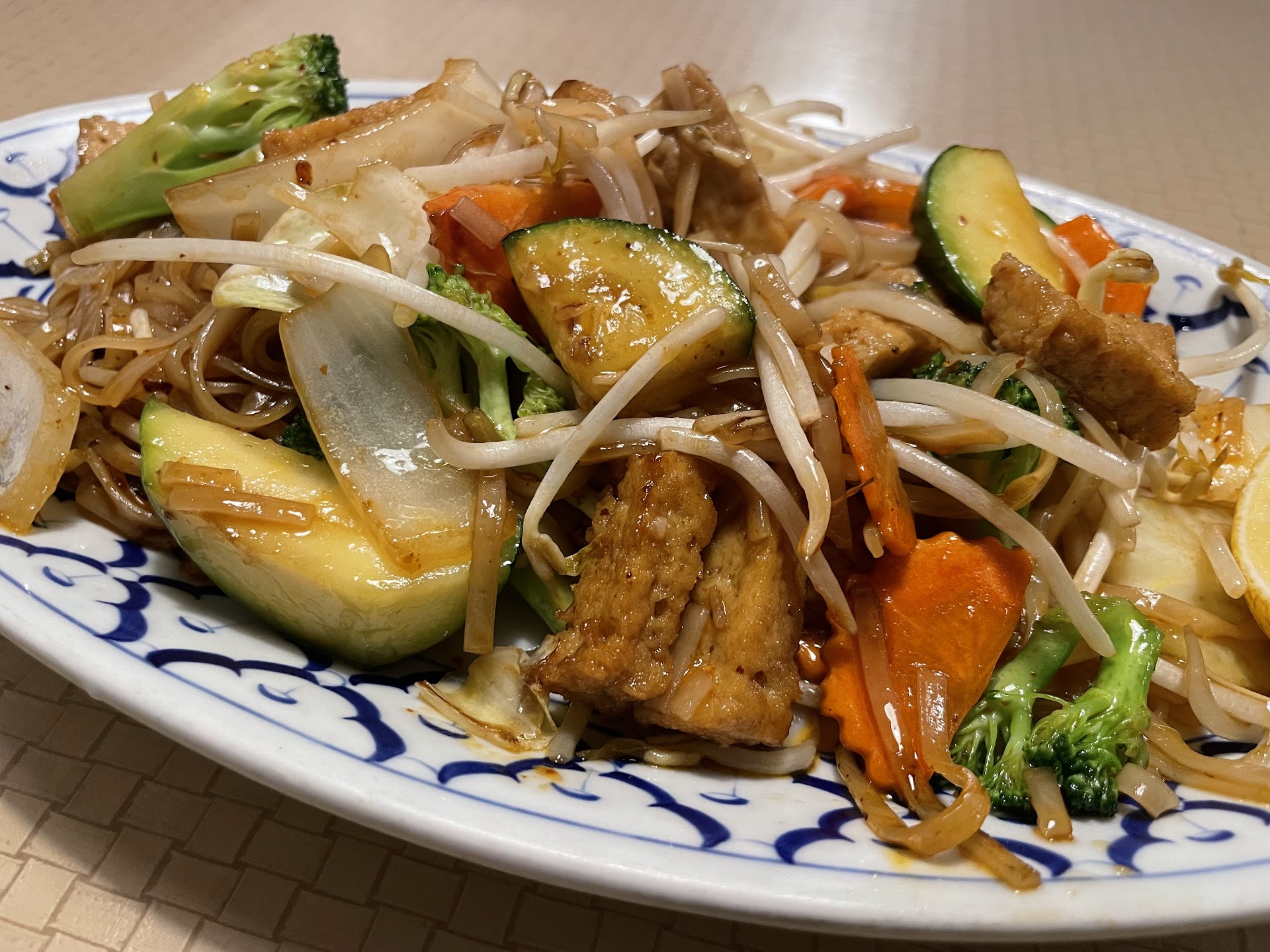 I was surprised (as I was the first time) at how un-busy it was, especially given the food quality. I ordered the Pad Thai with tofu and vegetables. When my server asked about spice, I replied with one word: “Medium.”