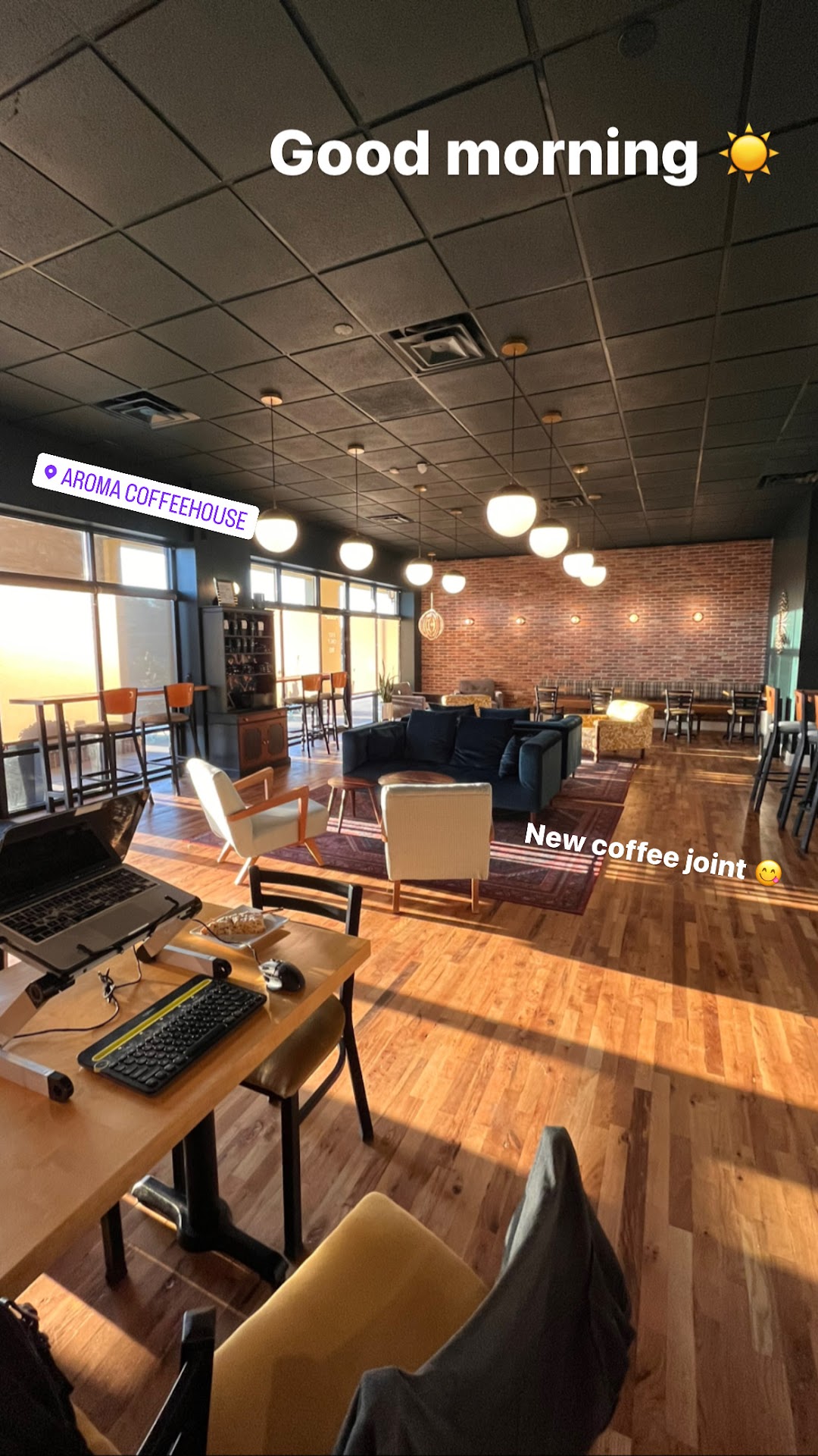 "As a real estate agent with RE/MAX Premier, Aroma Coffeehouse is like a second office for me and my clients! Located conveniently across the parking lot from my office, many of my clients make it a habit to grab a coffee before or after our meetings. Their caramel latte is a hit, and the cozy atmosphere makes it the perfect spot for great conversations. Whether Iâm stopping in for a quick pick-me-up or meeting clients there, itâs always a highlight of my day. Aroma Coffeehouse has become a must-stop for anyone who meets with me, and I canât recommend it enough to anyone...
