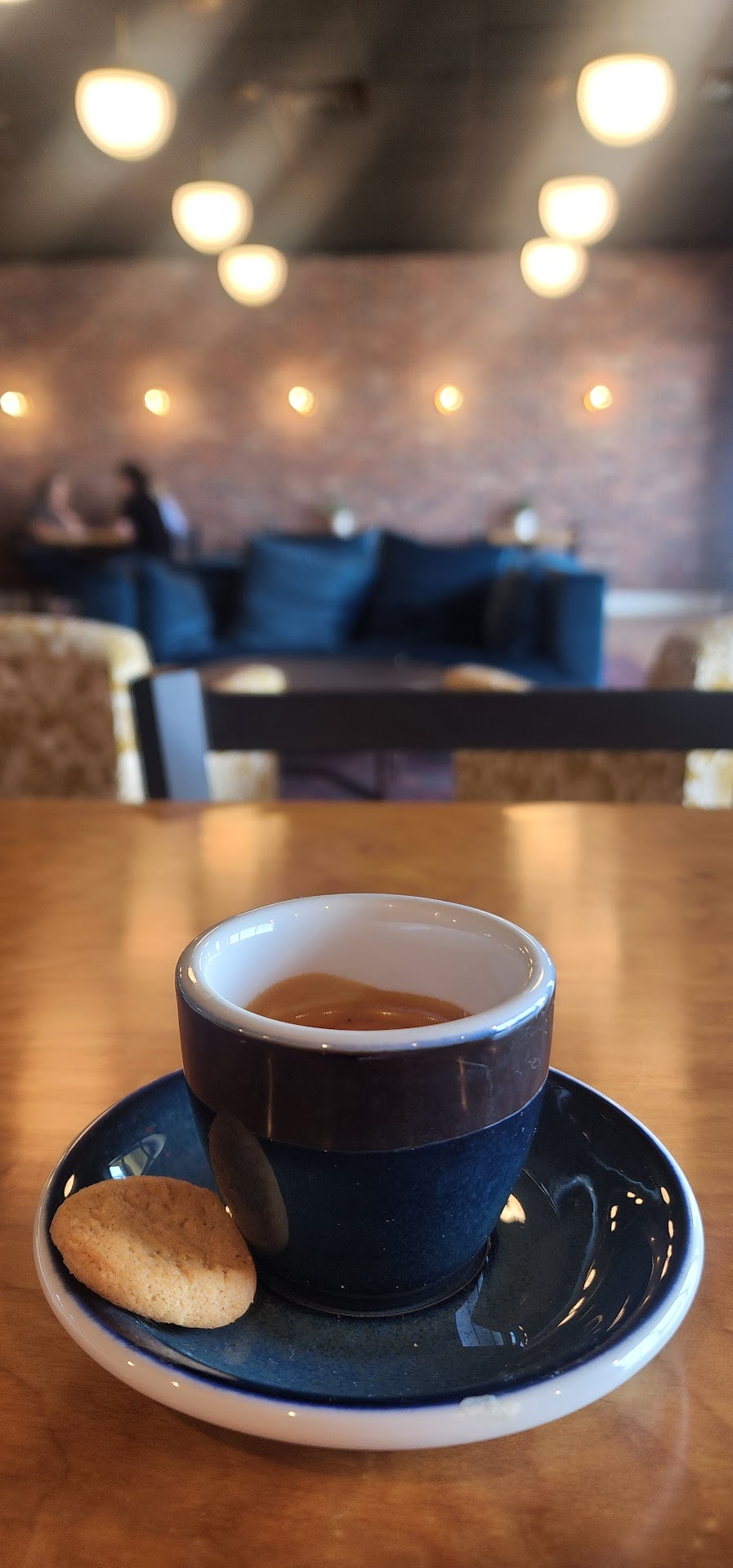 Great atmosphere with different nuances that you wonât find in chain coffee shops: detailed conveniences in the bathrooms, treat when you get your coffee, long tables to work on with comfortable chairs.