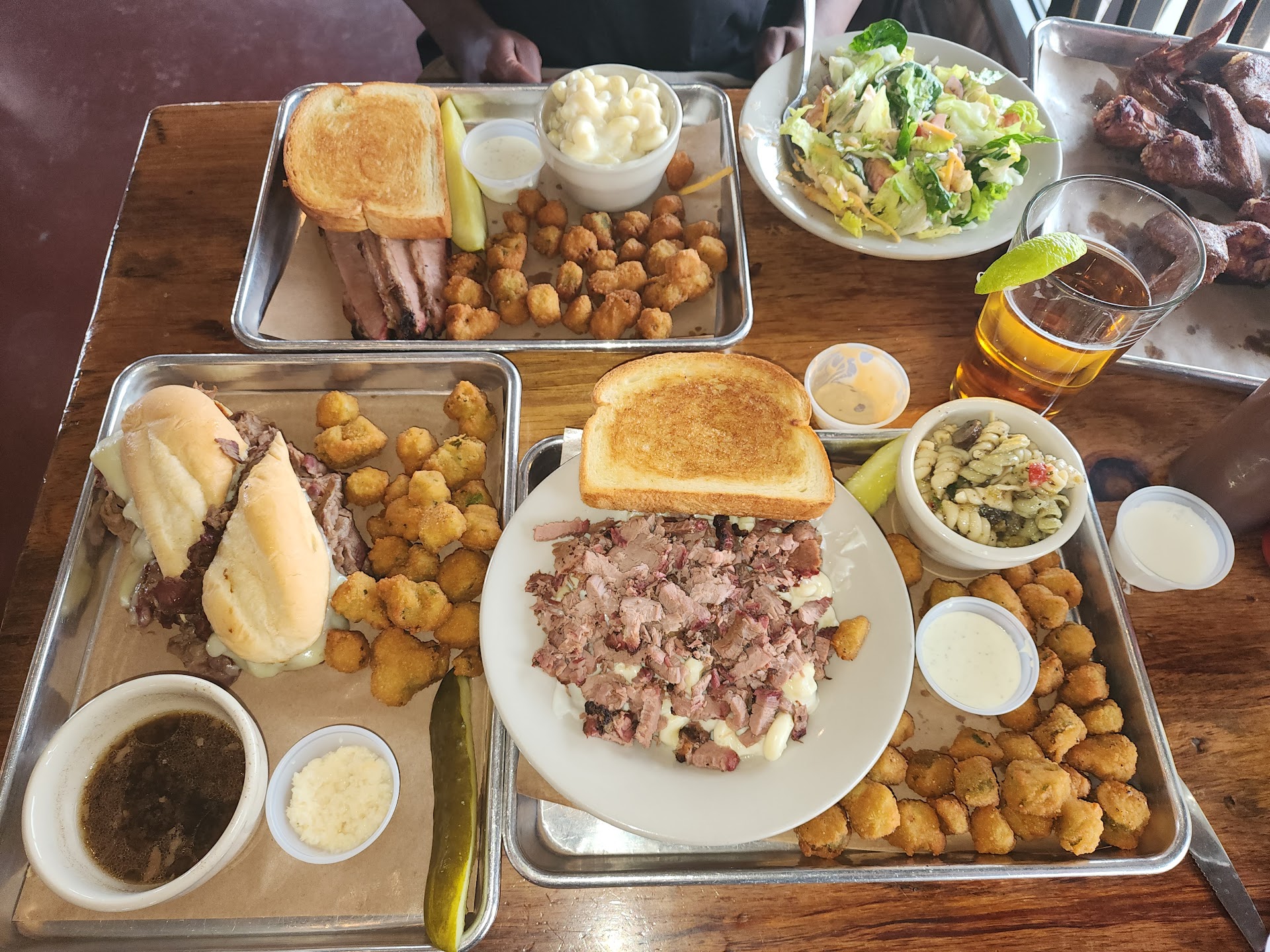 I got the Mac and cheese and two types of beans. Then ribs chicken and brisket. I asked if they had extra barbecue sauce and the lady just pointed to the main room. There’s a standard bbq sauce on the table. (It’s a bbq restaurant how are there not more sauces???)