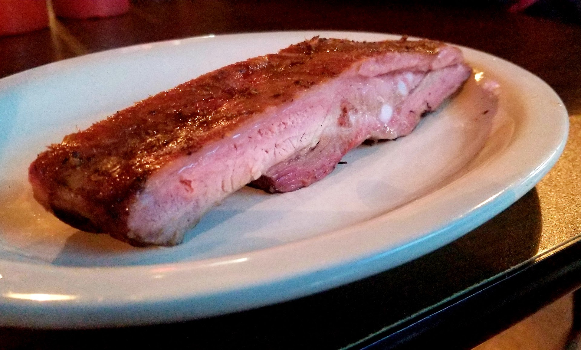 In order to try as much variety as possible, for appetizers: Cheese fries with BBQ meat (pulled pork) - delicious (A). We also ordered an individual 1 large spare rib - also delicious (A). The meat was soft and flavorful with good smoke flavor.