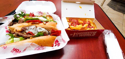 We got a Philly cheesesteak combo with Cajun fries regular size with large unsweetened tea for 16$ and some change, and a bacon cheesesteak with large ultimate fries with large watermelon strawberry lemonade for $20 and some change after tax 40$. We ordered to go and requested ketchup, forks,napkins, and mayo. We paid 60 cents each for two cheese sauce. The sandwiches are really good, the meat doesn't taste seasoned but is good. The philly with cheese sauce i added that myself. We only got one side of cheese sauce, we didn't receive any forks ketchup or mayo either. The ultimate fries are good, but they're too salty and not seasoned, the Cajun fries are good but they need salt lol overall we enjoyed the food and will be back. The staff was friendly and respectful. The prices are too high in my opinion but again I will go back as I think it is better than subways philly which is where we usually get a cheesteak from. The bacon is real bacon which was a plus and the lemonade tastes homemade with real strawberry pieces. The tea is good and basic. Next time i will order in person and get whatever condiments from them in person to avoid them not being in there. Overall good...