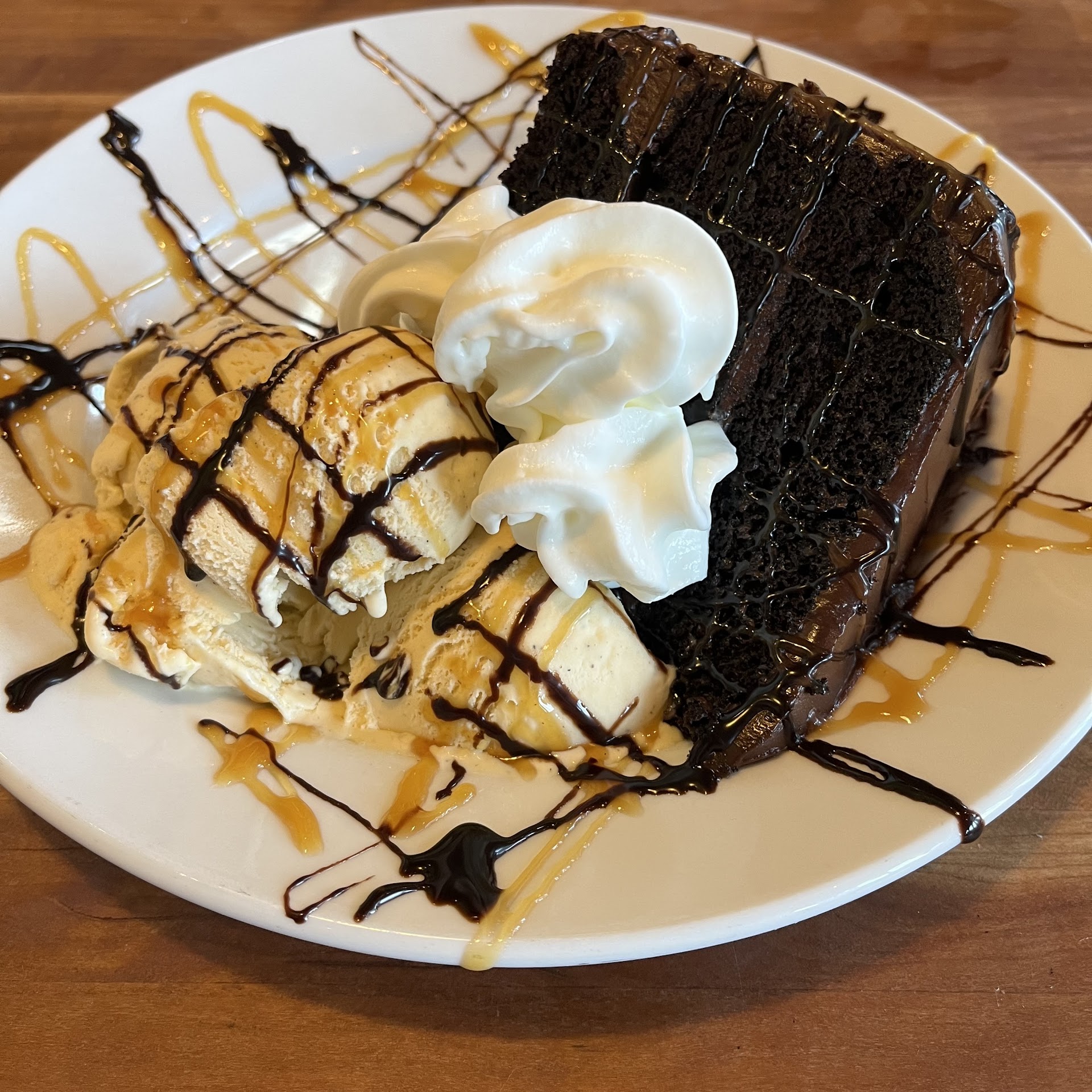 I had received a coupon in my email for a free birthday dessert and I redeemed it for a giant slice of chocolate cake and ice cream which was really really good.
