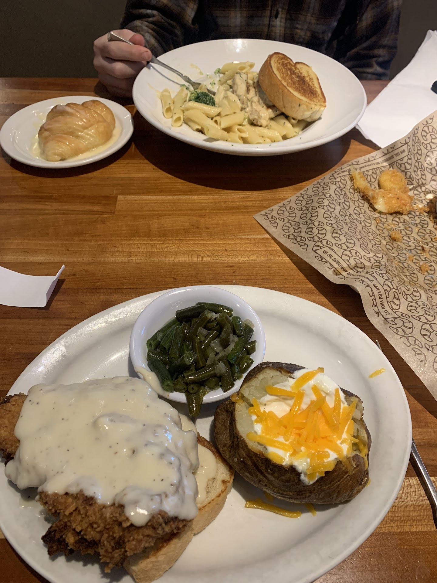 Read moreThe business was not busy at all. The food was…” okay” at best! The wait staff was Horrible our waitress informed us that the reason it took her so long to get to us was because she was “in the bathroom waiting on the front desk staff to get her toilet paper and then went on to tell us how incompetent they were.” ((TMI- I should have asked — did you wash your hands?) She took our drink orders and it took another 20 minutes for her to return with them. After taking our food order 30 min later we finally got our food but it was not what we requested- gravy was not on the side and the fettuccine didn’t have extra sauce and the “loaded” bake potato came with a teaspoon of cheese - no bacon bits no butter no sour cream. Our waitress proceeded to bash the kitchen staff. After we ate and asked for Togo boxes and it took another 30 minutes for her to return. Waited on the ticket and was mad when I paid with a gift card and didn’t tip her!! Very unfortunate experience!!! And a waist of two gift cards!!! Should have gone to one of the restaurants listed on the card!!!