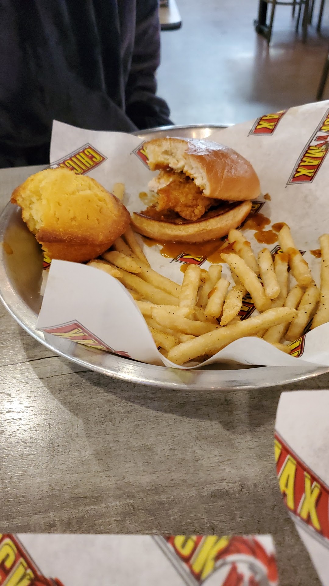 Not even worth it anymore. They need to hire better cooks that know how to fry well and actually care about what they are sending out under their brand. The tenders were soggy and mushy, the packaging it came in was also soggy, broken and dented in. Some of the strips were wet/soggy and none of them were great texture-wise, to be honest. The fries weren't fresh and were cold. The cornbread was soggy and falling off at the top. The only okay foods were the white cheddar mac & cheese (had to add my own seasonings to make it delicious), the toast that somehow stayed dry and the sauces. We tossed the chicken, fries and cornbread. It was very obvious they didn't care about quality or presentation. I wasted over $60 tonight on a meal from them just to try and give them another chance (yes, they've disappointed my family prior to this) because we initially fell in love with the seasonings and flavors. We could have just went to Popeyes and paid less for chicken we KNOW will have that superior crispiness/crunchiness and hot, fresh fries. Next time! Chick N Max has been a disappointment with poor quality food and packaging for some time now which is why we stopped ordering from them for a while. We will no longer be supporting any Chick N Maxs around here.