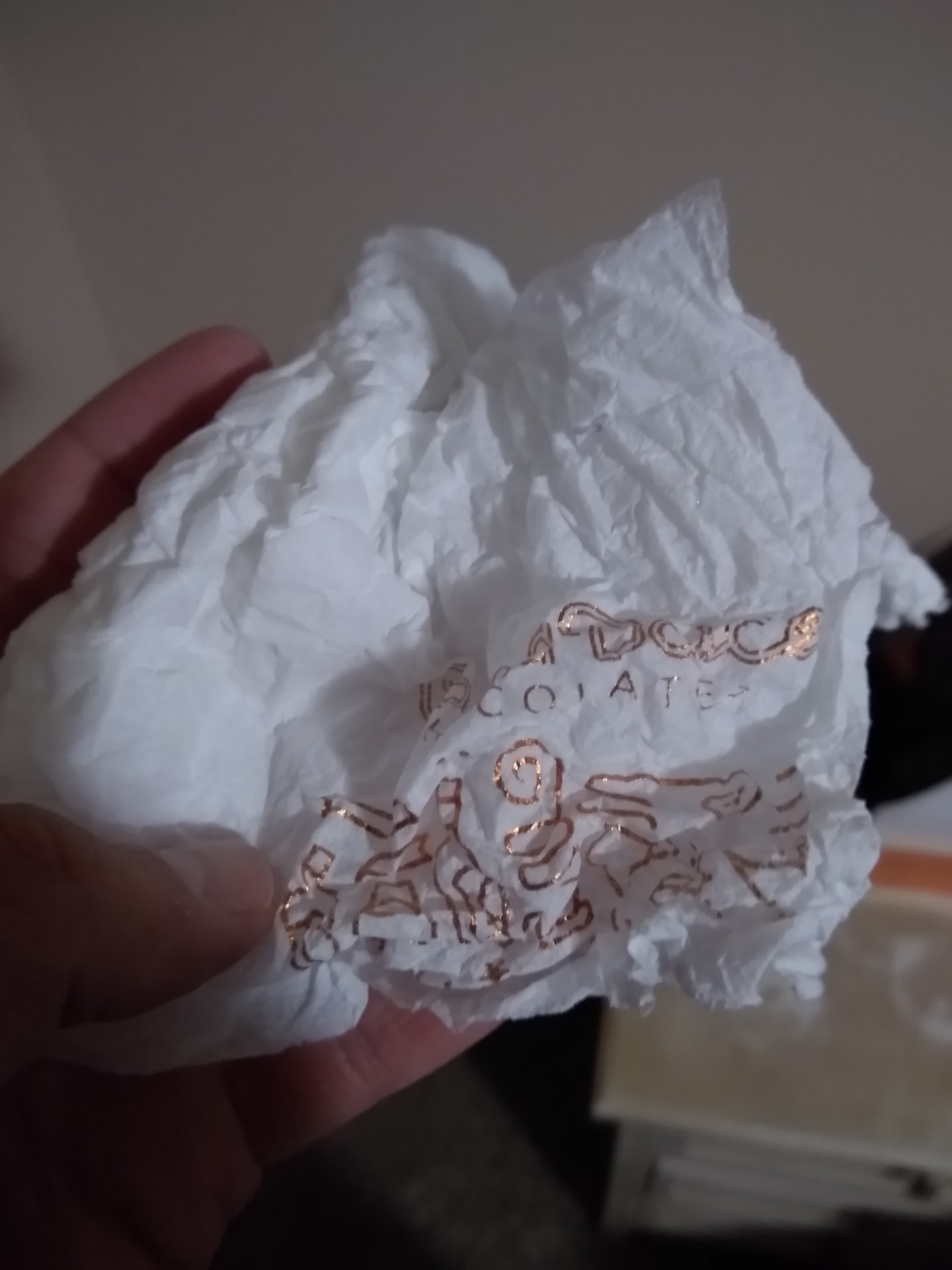 Cocoa Dolce has the most elegant and, in this man's opinion, sensual napkins that I've possibly ever seen. Their sight brought a joy to my heart that I haven't experienced in a paper product in quite some time. I couldn't help but photograph them-- the bronze text pleasantly reflecting back at me.