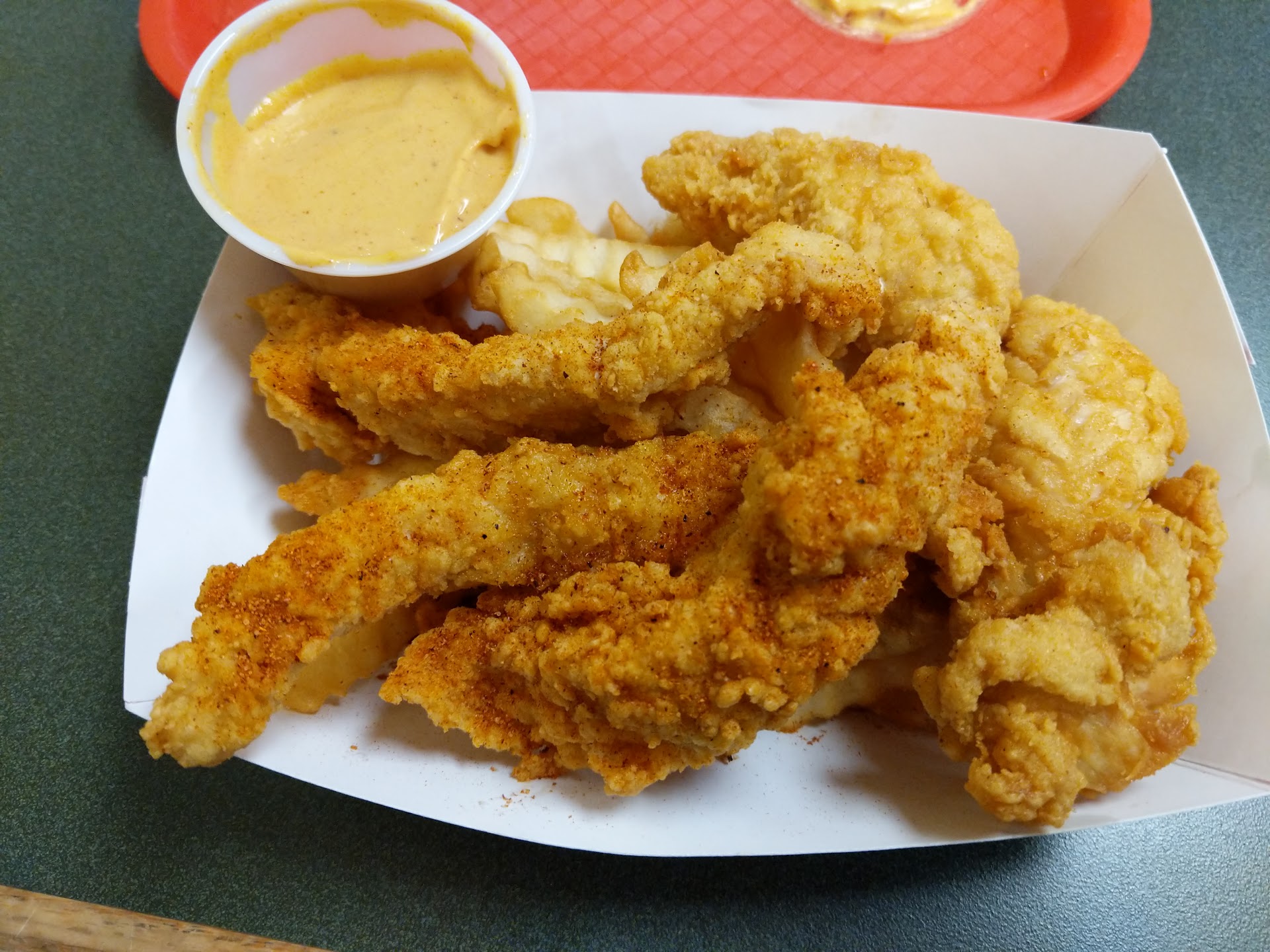 Tenders- They could be a little spicier. But I'm not complaining. Good crisp, good flavor. 9.5/10. They're so light I could eat em.all and not feel overly full. But they fill you up good.
