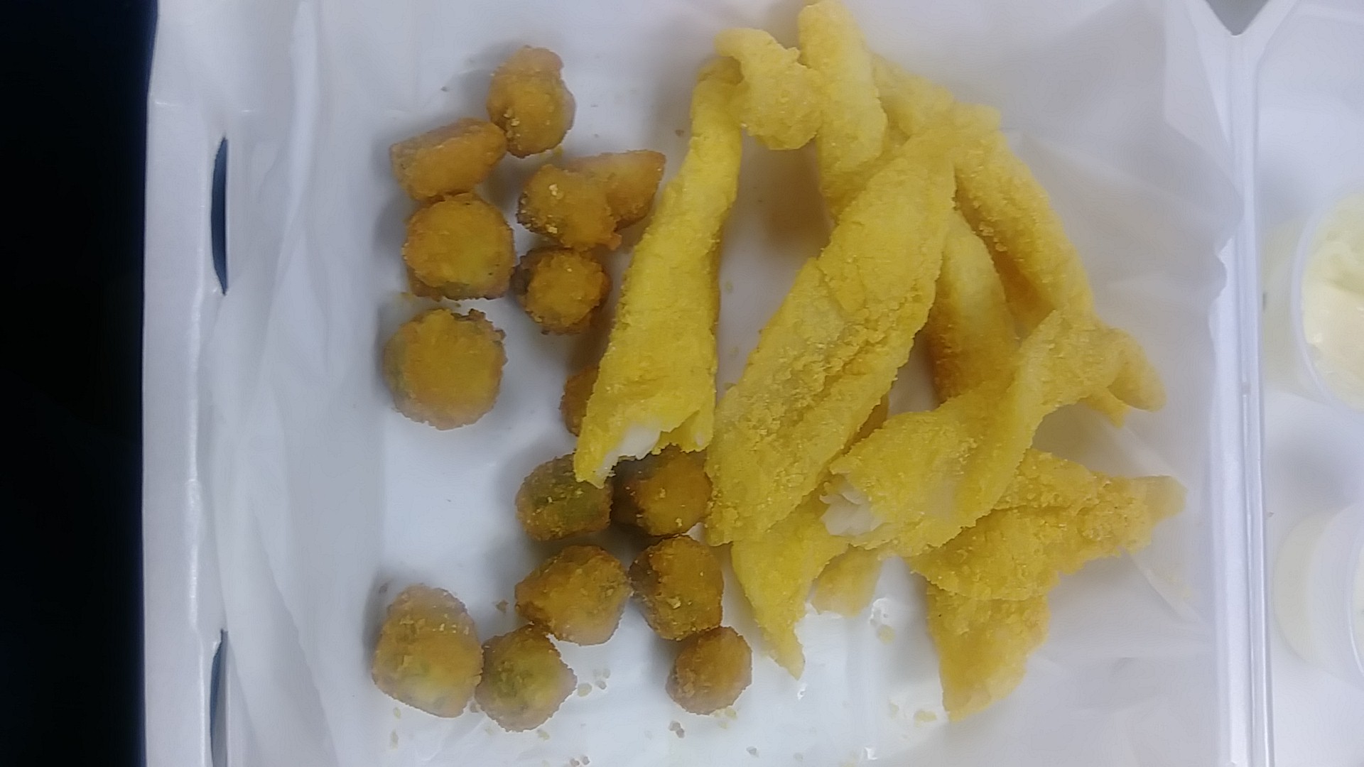 We also decided to try the chicken tenders, to get a full experience in one trip, but the breading was mush in the few minutes it took us to get it home.