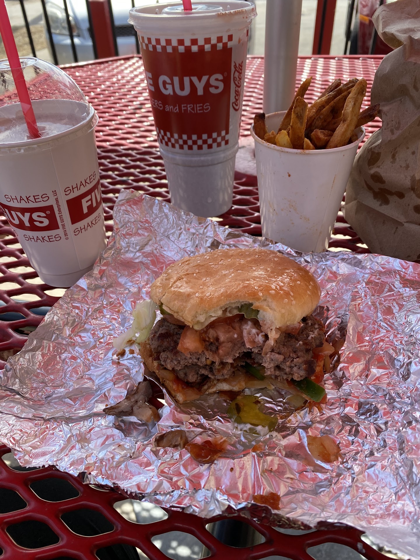 Burgers are one of my favorite foods, in part because you can do some very interesting things with them. Although Five Guys do have a lot of topping options available, they tend to be relatively mundane. All the standard choices are the there, but nothing really unique. Do you want bleu cheese and mushrooms on sourdough? French fried onions and horseradish? You'll need to look elsewhere for the more creative options.
