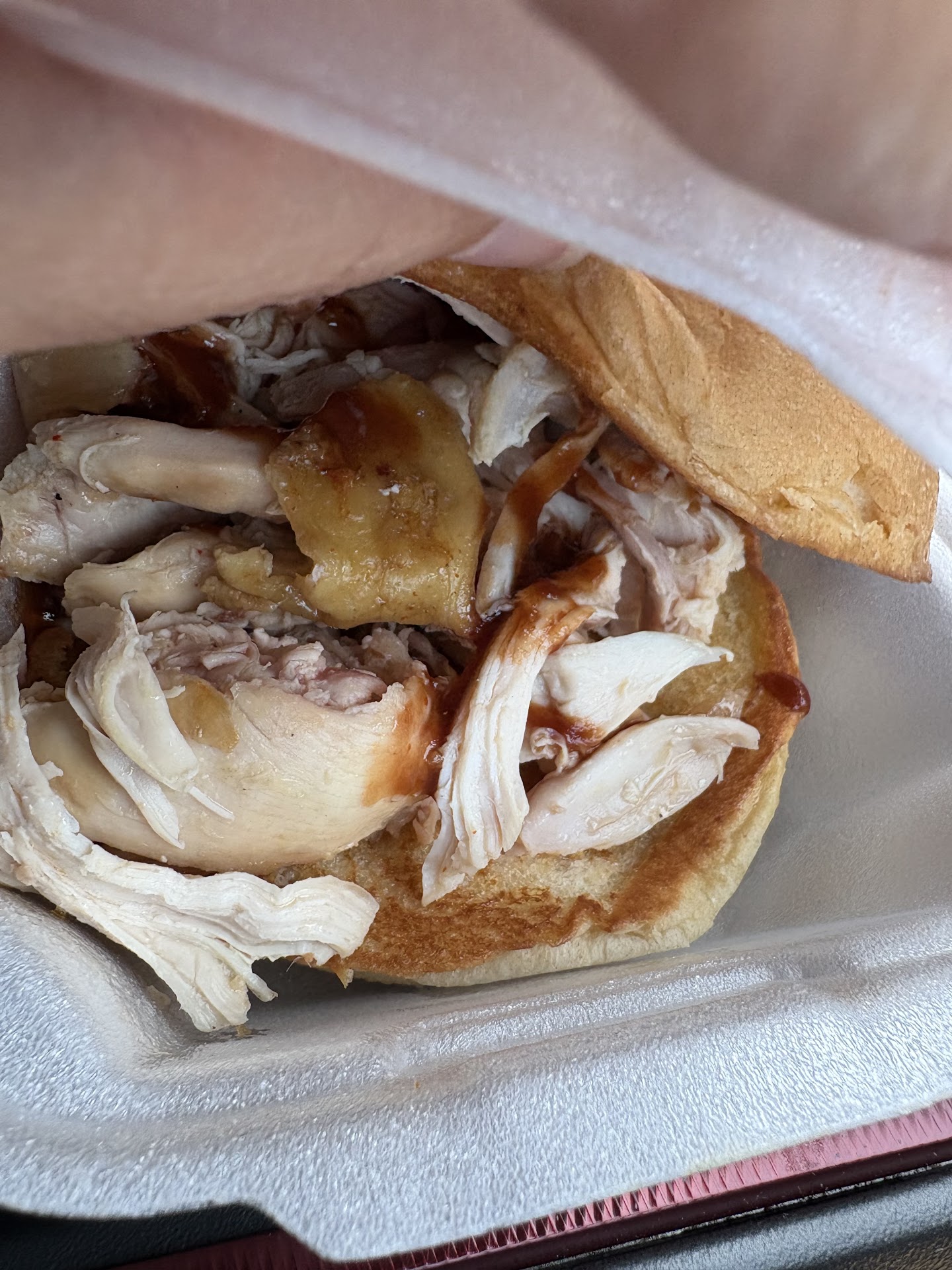 Ordered a chicken bbq sandwich and hot link sandwich. There was more bread than meat but honestly, I wasn’t really bothered by that much. The chicken was moist and the bbq sauce was okay. The sausage was fine but it lacked depth of flavor. I did order a side of their spicy bbq sauce to try and it did help flavor up the hot link sandwich quite a bit.