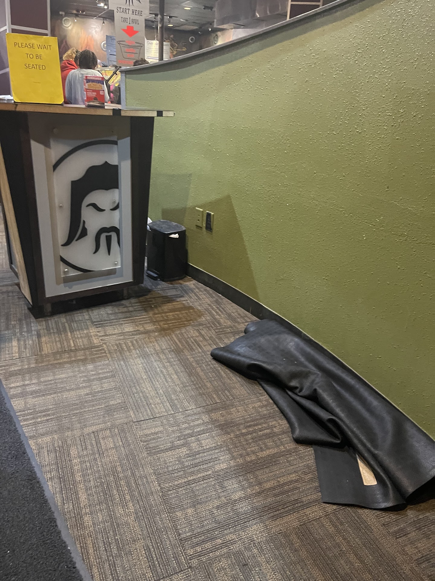 When I saw the rug laying at the door where customers walk in and the place had a bad smell I knew we should had left then. The walls had splattered food on them. Went to the restroom to wash my hands before eating and the bathroom was gross & smelt!