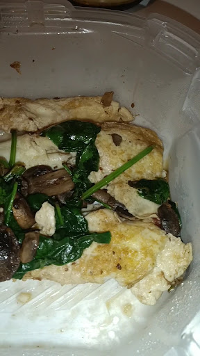When I first arrived at the restaurant, it wasn't busy, but there was a large party present. I was dining with a party of three and ordered the veggie omelet meal, specifically requesting it be made with regular eggs instead of egg whites. When it arrived, I noticed it had barely any vegetablesāno spinach,avocados or onions as described on the menuāand it was topped with a nasty pesto that wasn't mentioned in the description.