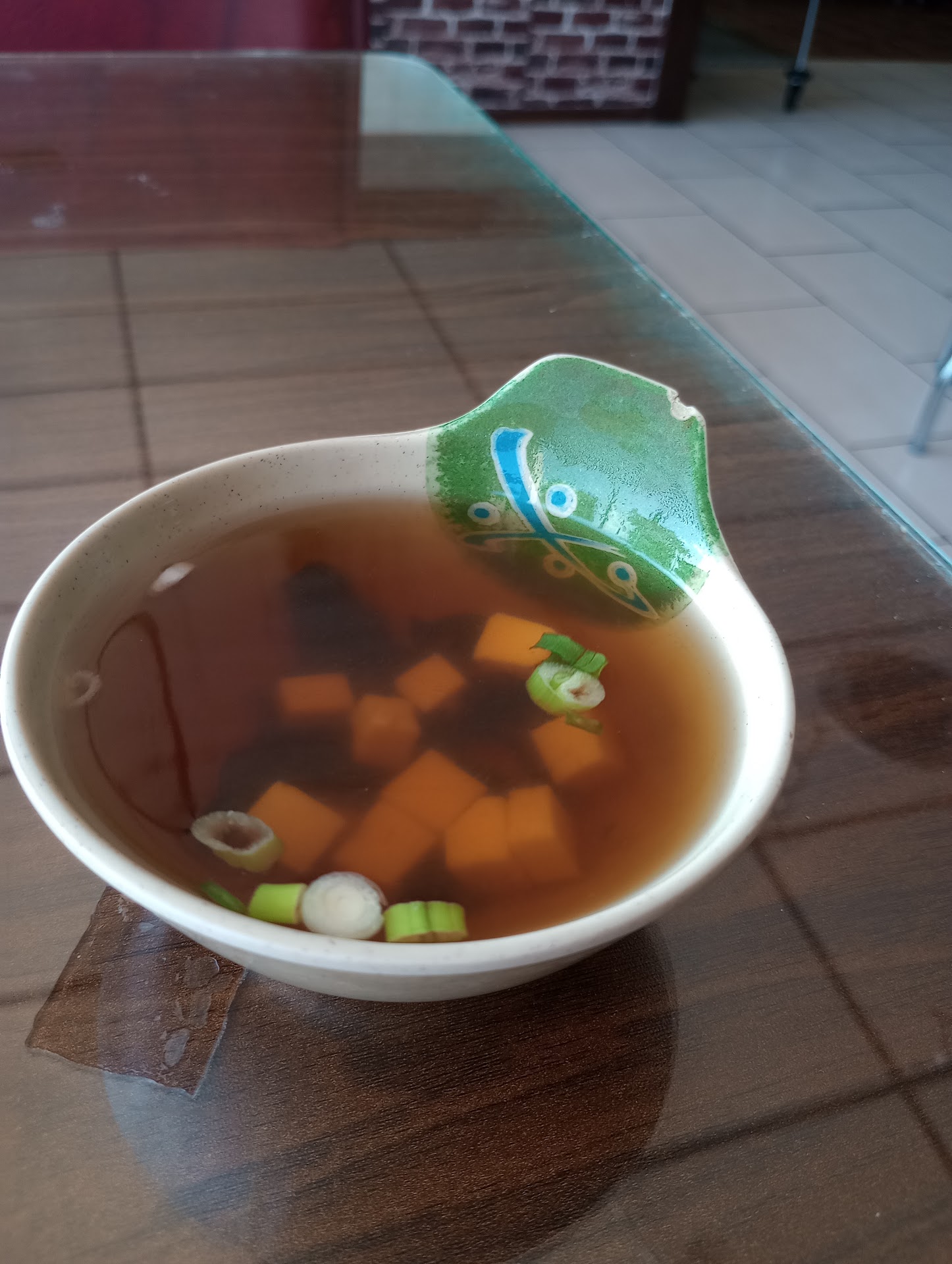 The waiter had a volunteer name tag on, so I am wondering if that had to do with the service. There were only two people working there, because the business is clearly struggling. We were the only ones there for most of our lunch. It seems like it is more of a hobby than a business because of the forgetfulness and casual attitude. The waiter was working on our meal while skyping or something similar with his mom and other family member while out in the lobby area where they make sushi. The entire conversation was quite audible and it just made for a lack of atmosphere and professionalism. I don't recall if there was music or not, but it wasn't enough to cover up the casual cell phone calls going on with the owner and the waiter. It was not a bad experience, but it also doesn't make one want to go hang out there or feel...