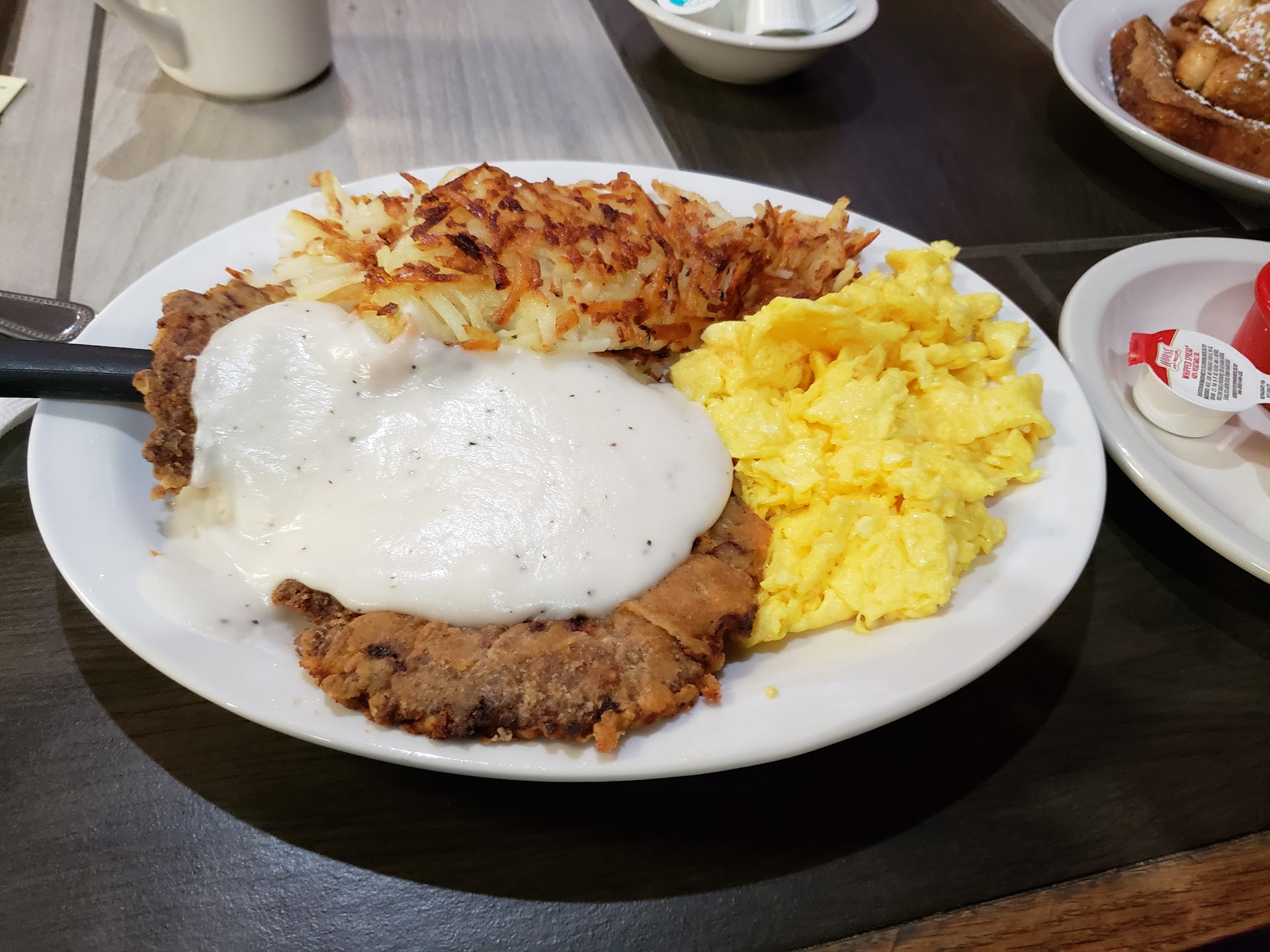 1st time visit. Don't let the neighborhood scare you away. As I thought Oh no... what an i getting myself into. I had originally went for the cinnamon rolls that every one says is the best. I however looked over menu and changed my mind I ordered the Philly Cheese steak sandwich and Fries. The sandwich was exceptional loaded with meat just the right amount of peppers and onions. Waitress did enquire if I would like mushrooms also. Passed on that. The fries are fresh cut there. They were yummy, the size was a little small. My daughter had the chicken tenders.. they were the largest pieces I had ever seen. I tried one the batter is awesome. It fried up nice crispy and light. They were not greasy. She requested gravy for dipping. It was great gravy. Her meal also came with salad, dinner role and vege. She chose deep fried okra. I never did get a cinnamon roll, when we check out the didn't have any icing..SIGH.. It has that family restaurant vibe, the waitress says everything is made from scratch. It was a good choice. Now I'll have to try earlier in the day for...