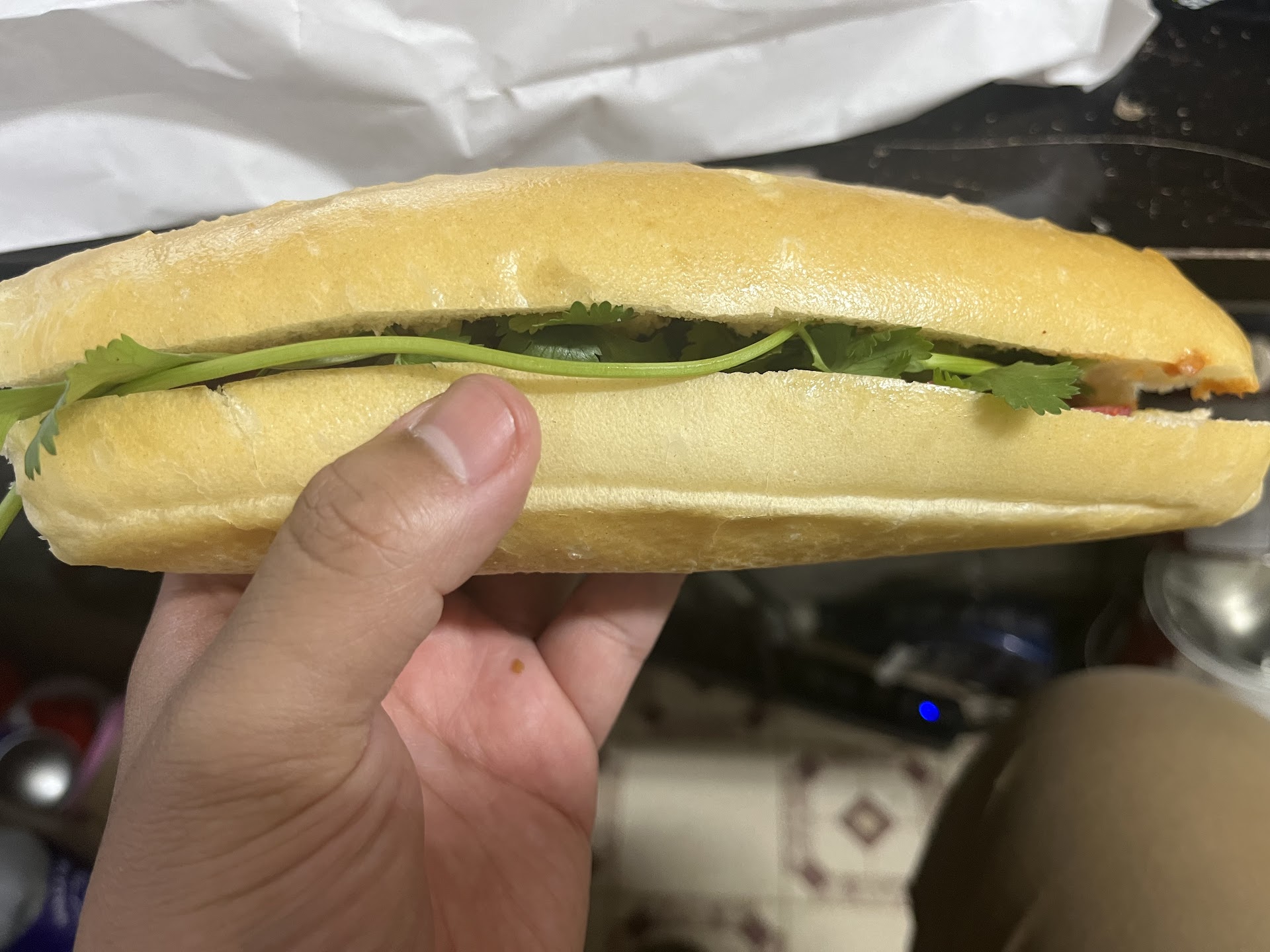 The banh mi I received were also extremely cold, soft, and soggy. As soon as I got into my car and touched the banh mi, the bread was incredibly soft. Banh mi should be crunchy and hard on the outside. It felt as if the bread was left in the fridge for 3 days then just directly bagged without being toasted. I should not be able to fold my banh mi in half.. They're also so tiny with barely any meat or fillings! I literally had 2 thin slices of meat. They're literally half the size of other places (and like a third of the size of the banh mi fron Thai Binh) for the same price.