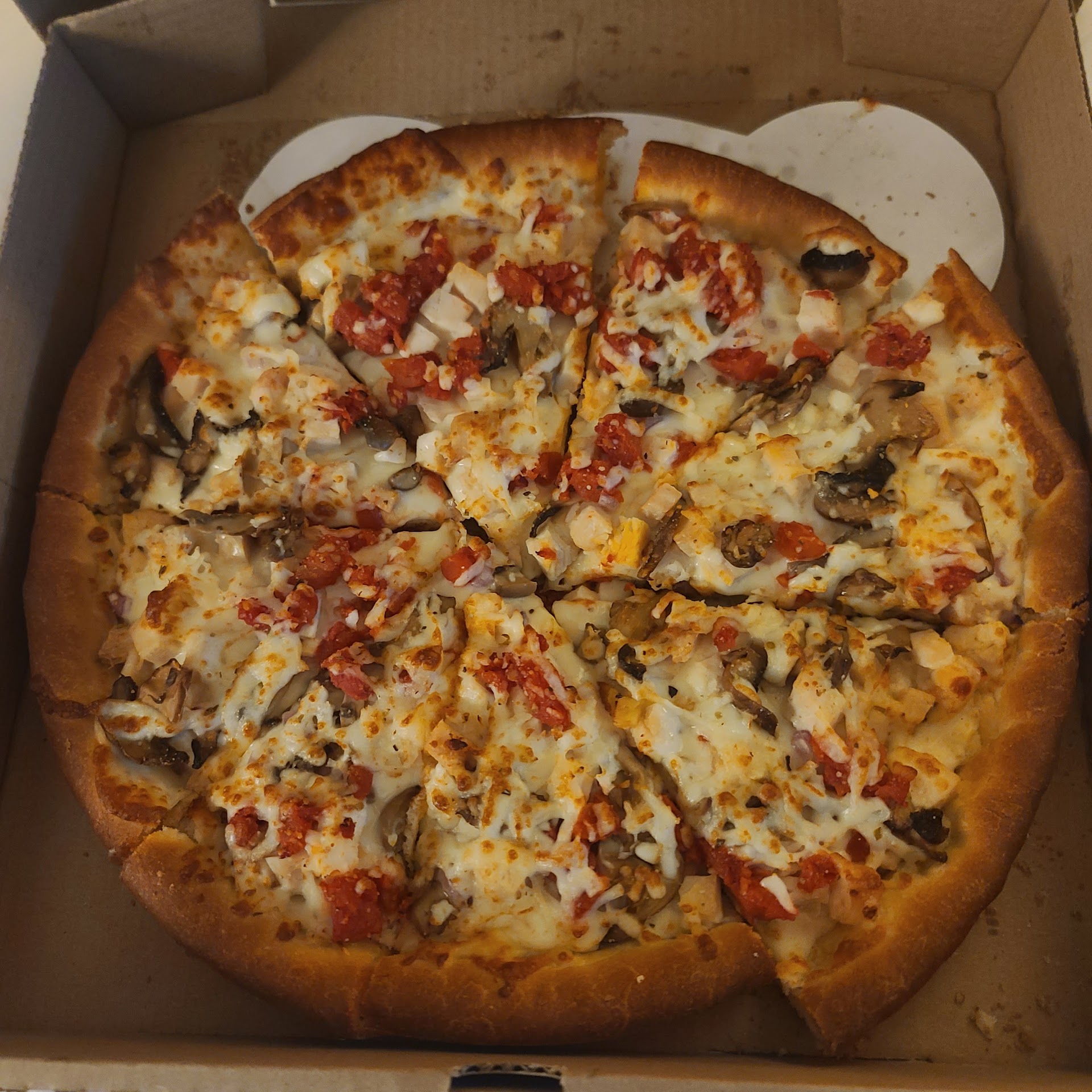 I also got the Chicago-style Chicken Alfredo pizza, which had a great combination of flavors. The crust was well-baked, the chicken was tender, and the Alfredo sauce was rich and creamy. However, I felt the pizza could have used more cheese to really bring everything together.