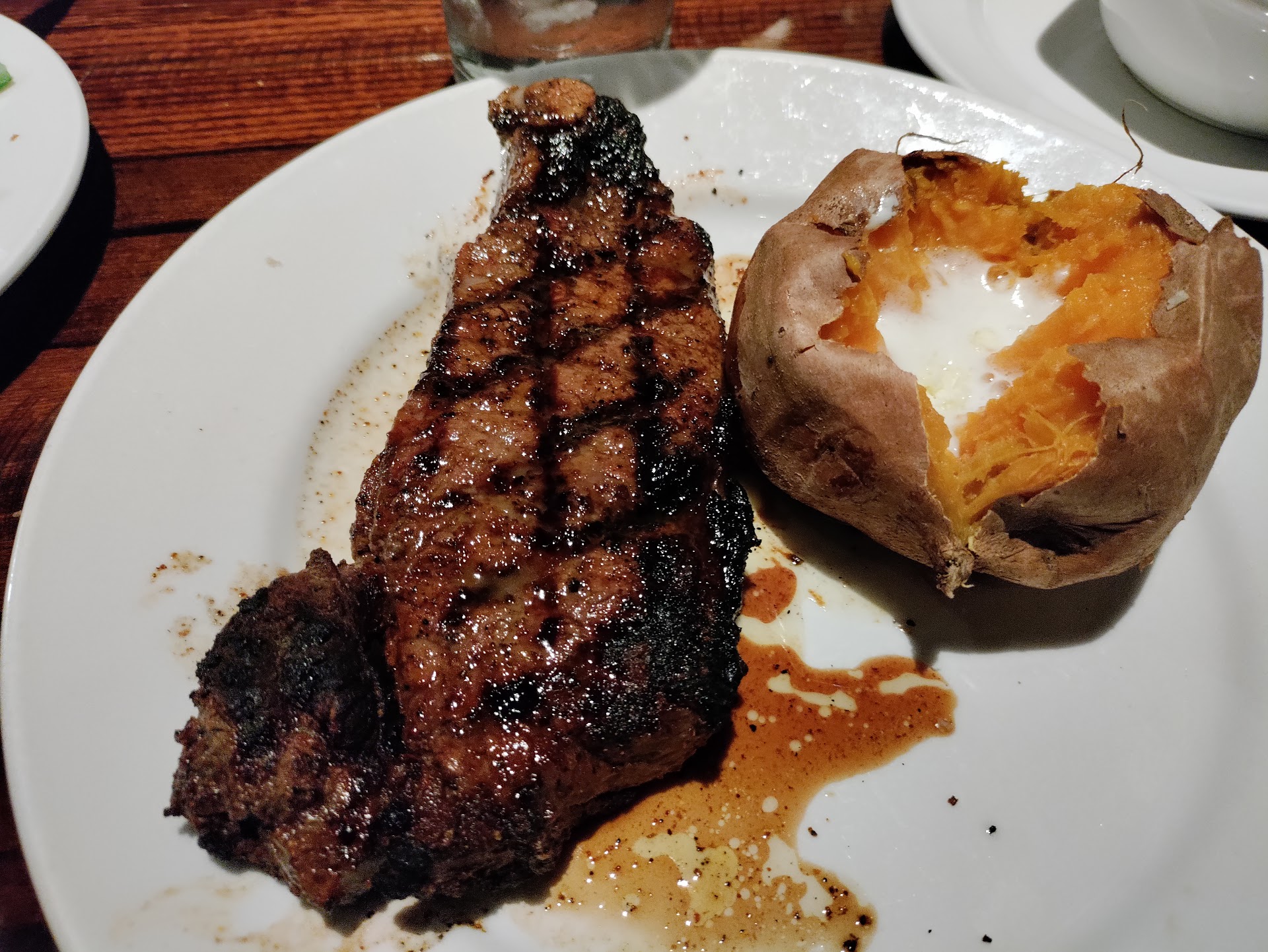 For the price the food and service was dismal. My T-bone was tough like Jerky for the first quarter cooked well done, then middle was medium well done, and then all of a sudden it turn into medium rare, blood and all. The meat was pretty flavorless compared to other T-bones I have had and made myself. Also the filet mignon portion of the T-bone was so small I was blown away. It was really a bone in New York strip. I asked for medium for my stake. I'm okay with a bit of blood prefer a bit of texture to the meat but okay with a bit of raw in the middle. I ask for medium to be in the middle as it is hard to go too far each direction from there but some how they managed to go both direction all in one steak. That first bit of the steak was basically shoe leather that was the worst part, the other end getting a bit too bloody and raw for my liking not awful, was okay. Feels a bit like they aren't turning the heat up high enough to get that nice char while leaving the middle a bit softer. So their steak sucked. Brussel sprouts were pretty good. Cesar salad was okay, should forget the parmesean shavings though as they are 90% sawdust and only 10% cheese. I thought the asparagus was okay but my daughter swore up and down that the seasoning they usually use was missing. Waited the whole meal for the waitress to come back but we were done eating by the time she did. My daughter didn't finish her asparagus and was going to take it home to add flavor. She asked if they changed the recipe. Nope they just forgot to season it at all. Waitress was like sometimes they don't get enough on them. Nope these things were dry 100%. I guess it is a butter spread they put on them with seasoning in it. I am positive it was missing. Tasted just like it does at home when you steam them. Sweet potato was good, lots of sugar but it blended in well and if you don't want so much it would be easy to scoop some off before mixing it in. Basically there are a ton of other nice restaraunts that would be a lot better probably for less money at some. My daughter and I were joking we would go to Olive Garden before going here again. I like olive Garden but I also get that compared to really good Italian restaraunts it is pretty close to fast food. So I'm basically saying I would eat fast food before coming back...