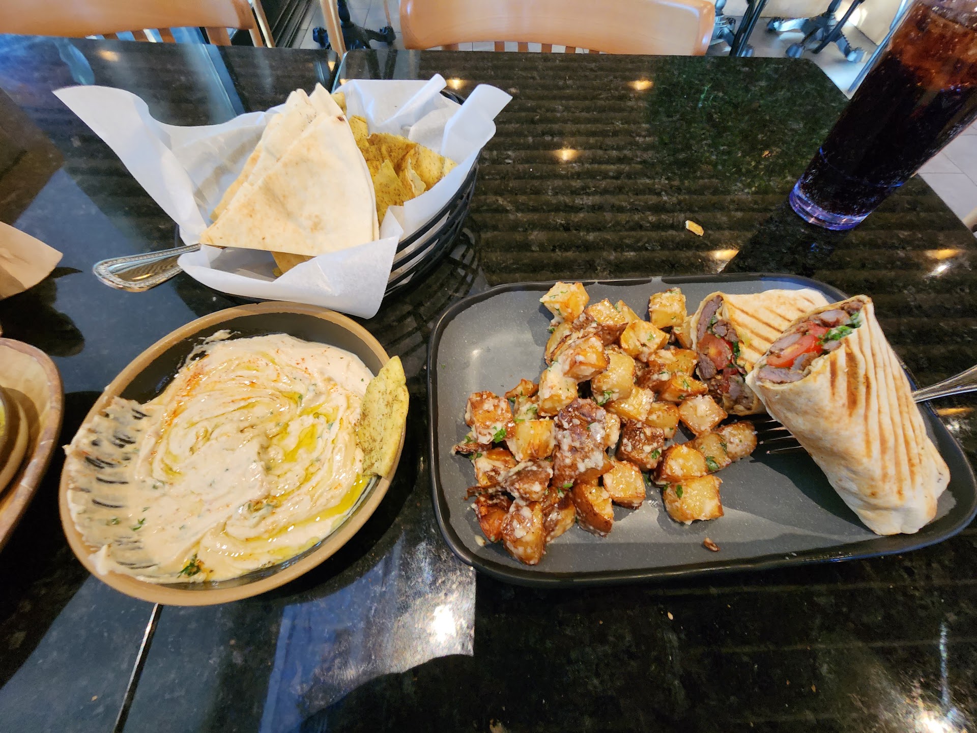 Okay, let's start with the food service. Mediocre at best and rivaled by Wendy's. We ordered two meals and a side of hummus for an appetizer. It took about 20 minutes and everything came out at once, rather than the hummus coming out first.