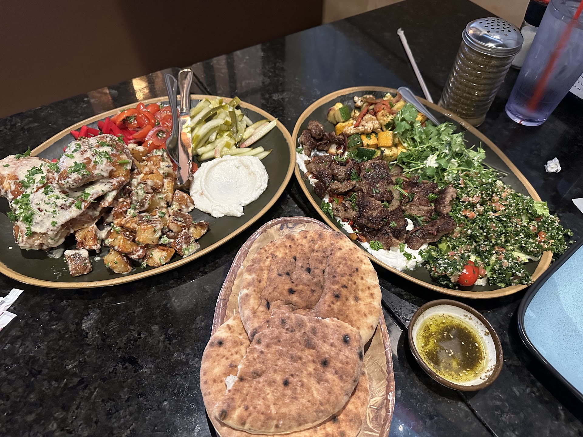 The entrée and side were quite good and portions were generous. There are good vegetarian options. The cheap olive oil did a great disservice to the nice, complementary pita. The dessert menu seemed to be slightly shorter in person than it was online. They supposedly have a variety of “fusion” baklava, but I opted for the crème brûlée, which was an undercooked disappointment.