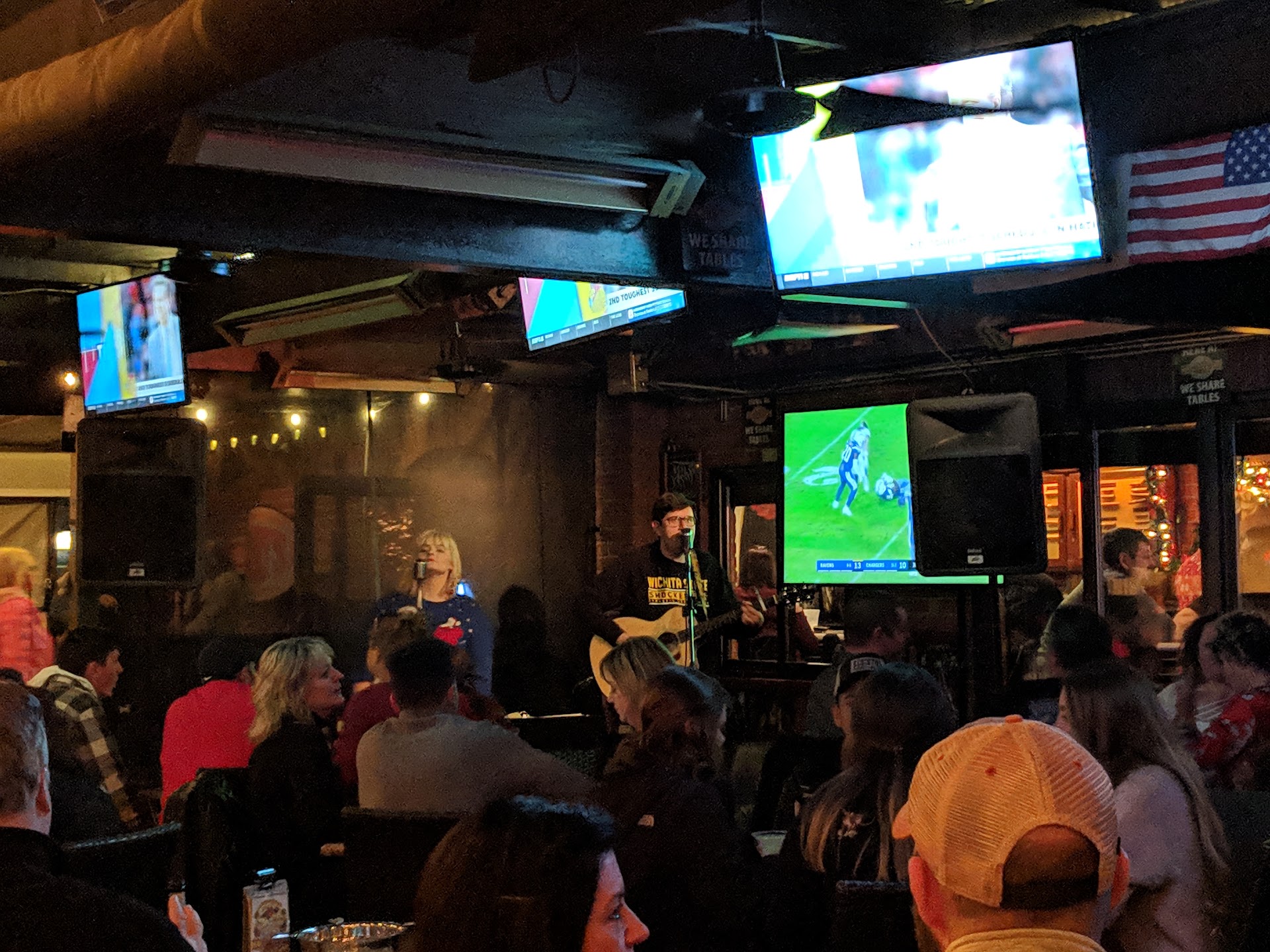The staff was friendly, but not attentive. Any time I wanted another drink, I had to walk into the bar and announce myself to get any service. This is just inexcusable. It may have been a skin color issue because the person who kept yelling "I knowed you ain't jus axed me dat!" seemed to get much more attention and service. The service was nearly enough to influence my decision to not darken their doorstep again, but there's another issue that drove the final nail in the coffin: