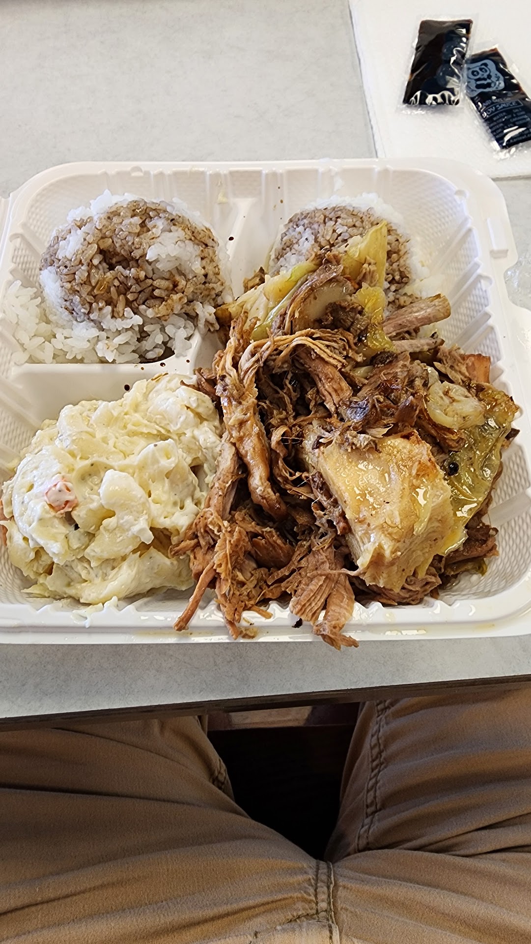 Read moreI went to the reopening, and I know there are going to be kinks, and debated about posting this but I feel like I have to. I went to the other locations almost religiously and was excited they were opening again. The service was atrocious. Honestly it wasn't too bad when I got there and was waiting in line, but right as I stepped up to order a young man came in and said he was there to fix everything and then began bad mouthing and berating the other employees. It was appalling. The two men that were there were doing pretty well on their own considering and certainly didn't need this young man to come in and start talking crap on them loudly to the guests. I ordered one of my favorites, the ahi poke, which was taste wise just alright, but was crammed into a small clam shell box, when I could see they had the large portioned ones on the plating space. I looked over and even the khalua pork meal, which comes with macaroni salad and rice was also being crammed into the small boxes. When I opened my box some of my food toppled into the table, it was so crammed in there. I'm so disappointed and I hope they get this all figured out, because that experience would make me not want to go back ever. Update: The containers for everything but the poke were replaced with bigger, but the poke is still spilling out...