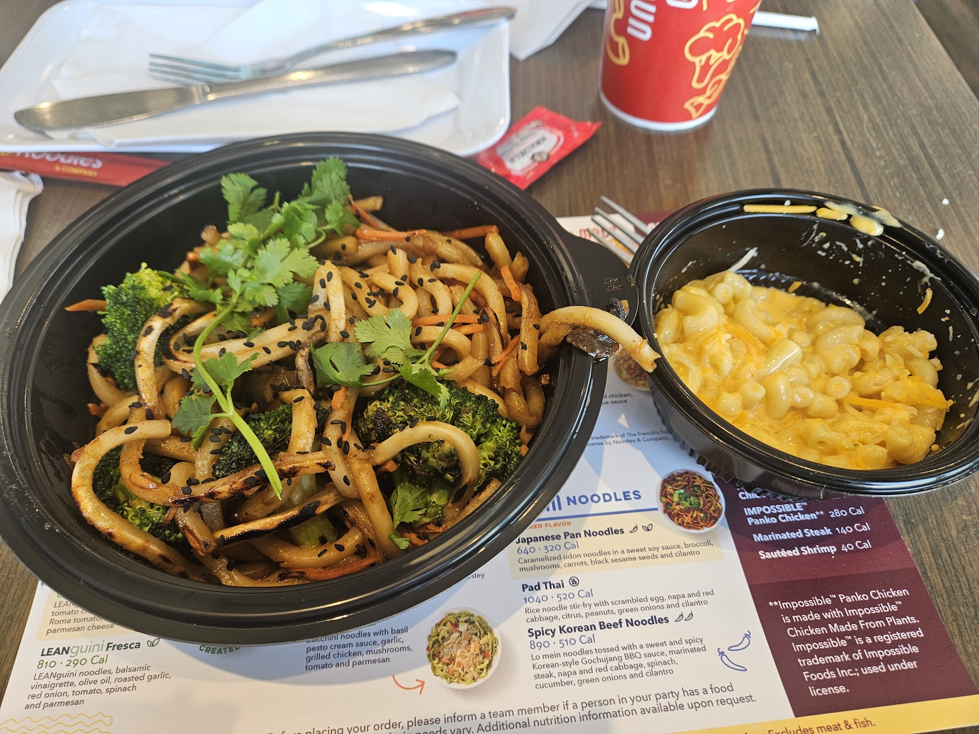 I understand that typically when you order online, you go through the drive thru pick up to get your food. Last night I had ordered online and since some of my family ordered food from the restaurant 5 Guys, great service by the way, I would just rub in and grab it. When I entered Noodles and Company I walked right up to the front desk and gave them my name for my pick up order. I was told they were working on it and it would be ready soon. It's my fault for not saying something sooner, but I stood there for 25 mintues, as I assumed the information I gave them would make it apparent that I wasn't picking up through the drive thru. I was totally wrong. My food had been sitting by the drive thru for who knows how long. I understand it was human error, it was teenagers working during the dinner rush, but I didn't even get an apology. As for the food, I ordered the pad thai. It was how I expected pad thai to be from a non authentic place. It wasn't terrible but it...