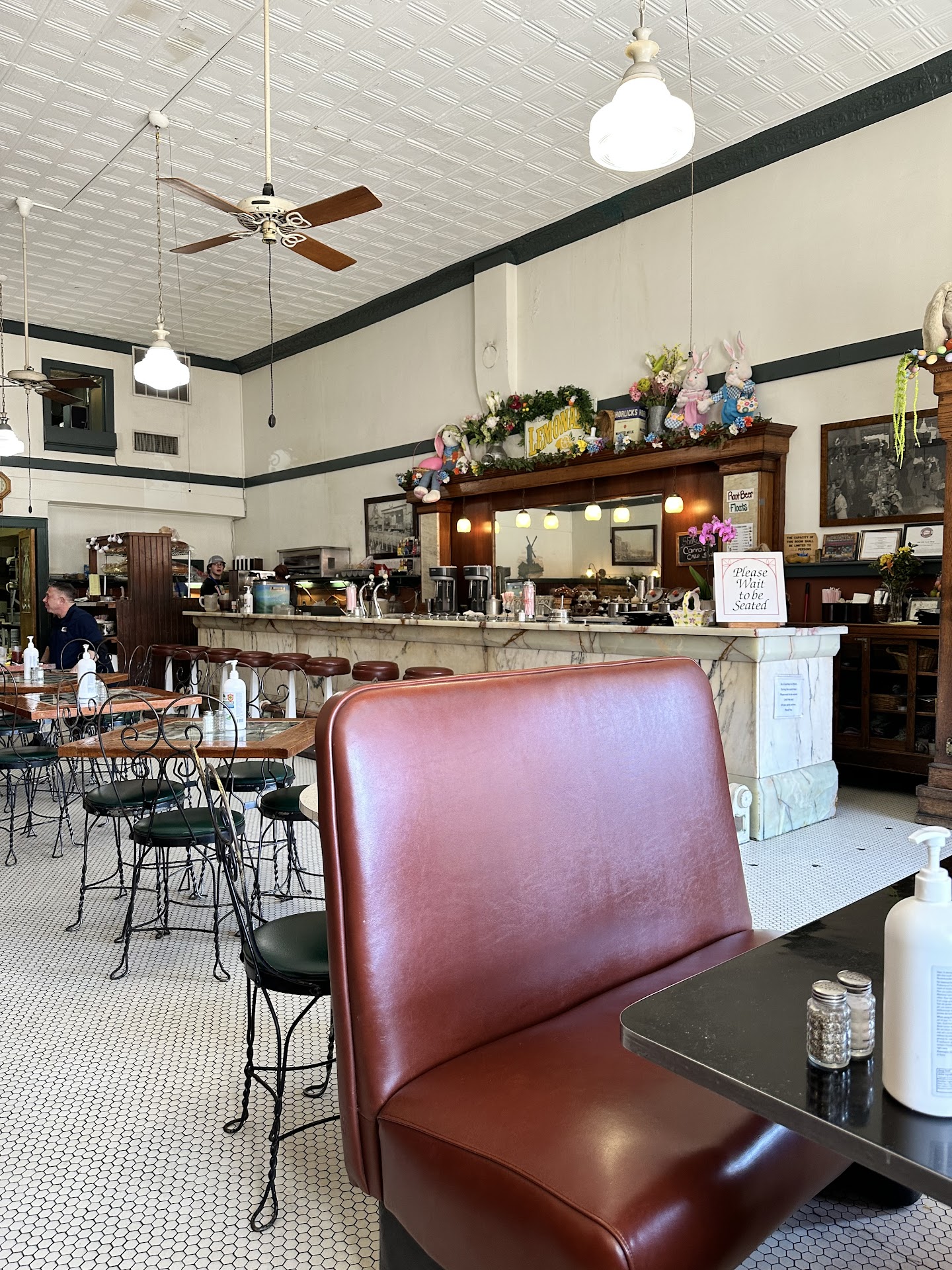 Read moreWalked in to a blast from the past. Sat down at the soda bar and ordered the Monday blue plate special chicken enchiladas for 8.95. Quick service...5-10 min wait for food. Looking at my food right now. Not a big plate of food. 2 enchiladas,some beans with cheese and some round corn chips. Beans were average. Enchiladas were good. I personally like them a little spicier but for a non-Mexican restaurant can't complain. The chicken inside was too dry though. Add a little heavy cream for moisture , some shredded swiss cheese inside, and some pimentoes for color, and a couple of sliced jalopenoes on top would bring it from a 7 to a 10. After the blue plate special I ordered the brownie with a scoop of vanilla ice cream. Brownie was cold so waitress microwaved it for me. Much better! But the ice cream was the real treat. Old fashioned homemade vanilla. Very good. Would come back. One last thing. I walked into the place at 11 and the place was half full. Nobody at the bar. When I left at 11:45 the whole place was full with about 20 people in line. Recommend early or late lunch. All in all, I give the place a thumbs up. I'll be back...